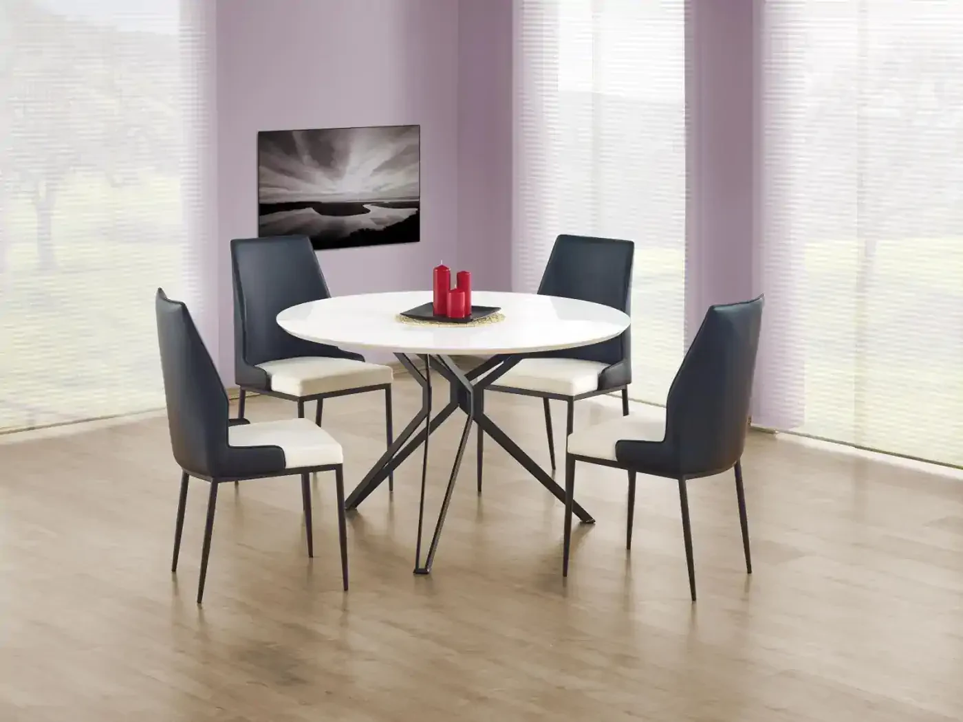 - Funkcjonalność - okrągły blat o średnicy 120 cm umożliwia komfortowe korzystanie z niego w różnych przestrzeniach – od jadalni, przez salony, po biura. Jest idealny zarówno do codziennych posiłków, jak i spotkań z przyjaciółmi czy rodziną, tworząc przyjazną atmosferę do rozmów i wspólnego spędzania czasu.