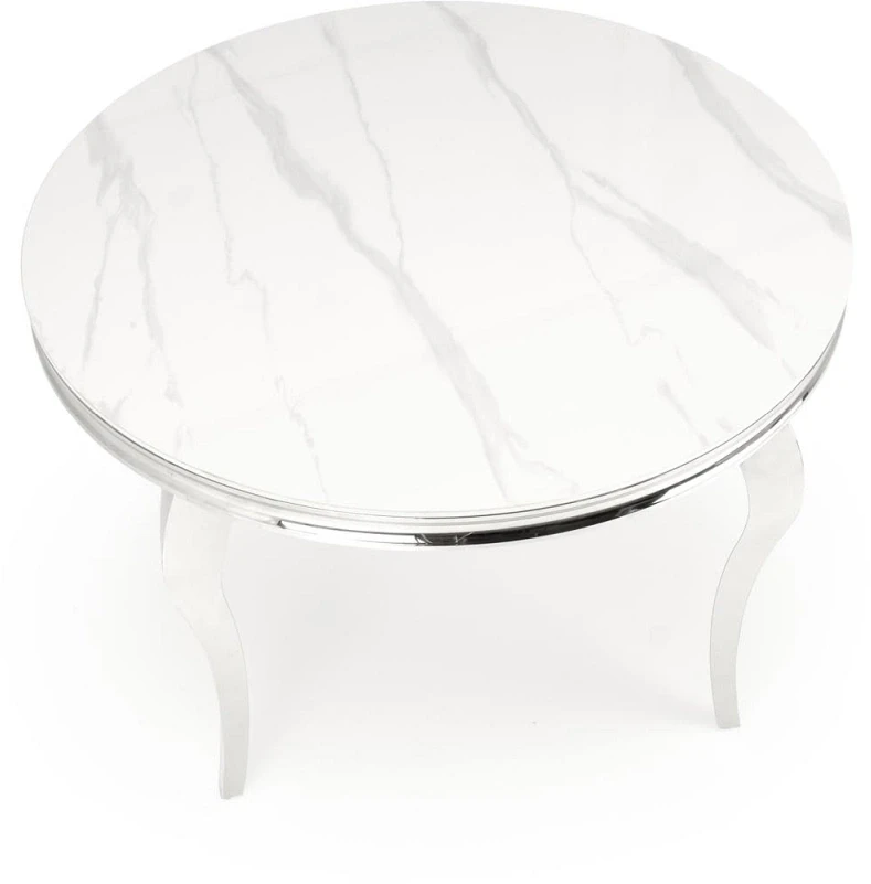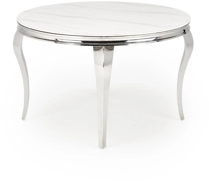 Stół okrągły Reginald glamour elegancki do jadalni 120 cm biały marmur/srebrny