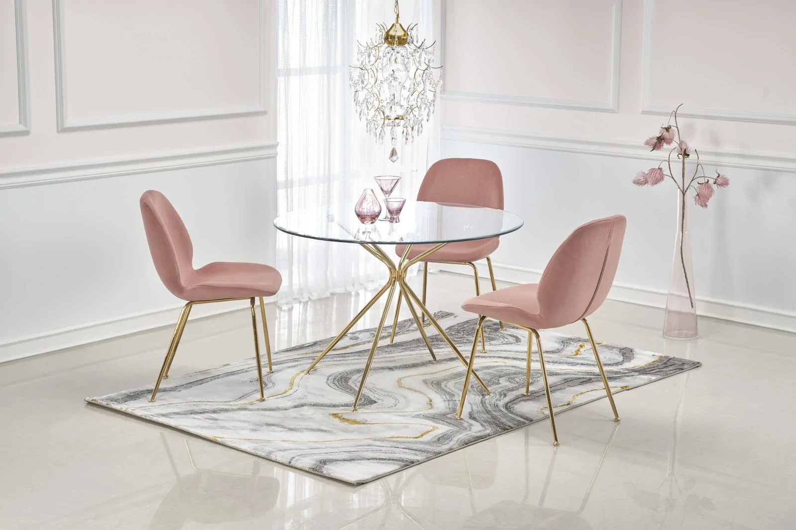 Stół Rondo to wyjątkowy element wnętrza, który doskonale łączy nowoczesny design z funkcjonalnością. Jego okrągły blat wykonany z transparentnego szkła nadaje wnętrzu lekkości i elegancji, jednocześnie pozwalając na eksponowanie innych elementów dekoracyjnych pomieszczenia. Nogi stołu w kolorze złotym, wykonane ze stali chromowanej, przyciągają wzrok i dodają pomieszczeniu luksusowego charakteru. Dzięki swojemu kompaktowemu rozmiarowi o średnicy 110 cm, stół Rondo świetnie sprawdzi się zarówno w mniejszych, jak i większych przestrzeniach, oferując miejsce na przyjemne spotkania z rodziną i przyjaciółmi. Idealny wybór dla osób ceniących nowoczesny design i wysoką jakość wykonania. Stół Rondo to synonim stylu i funkcjonalności. Jego nowoczesna forma oraz użycie wysokiej jakości materiałów sprawiają, że jest to mebel, który doskonale uzupełni każde wnętrze, dodając mu wyjątkowego charakteru i elegancji. To idealny wybór dla osób, które pragną łączyć piękno z praktycznym zastosowaniem.