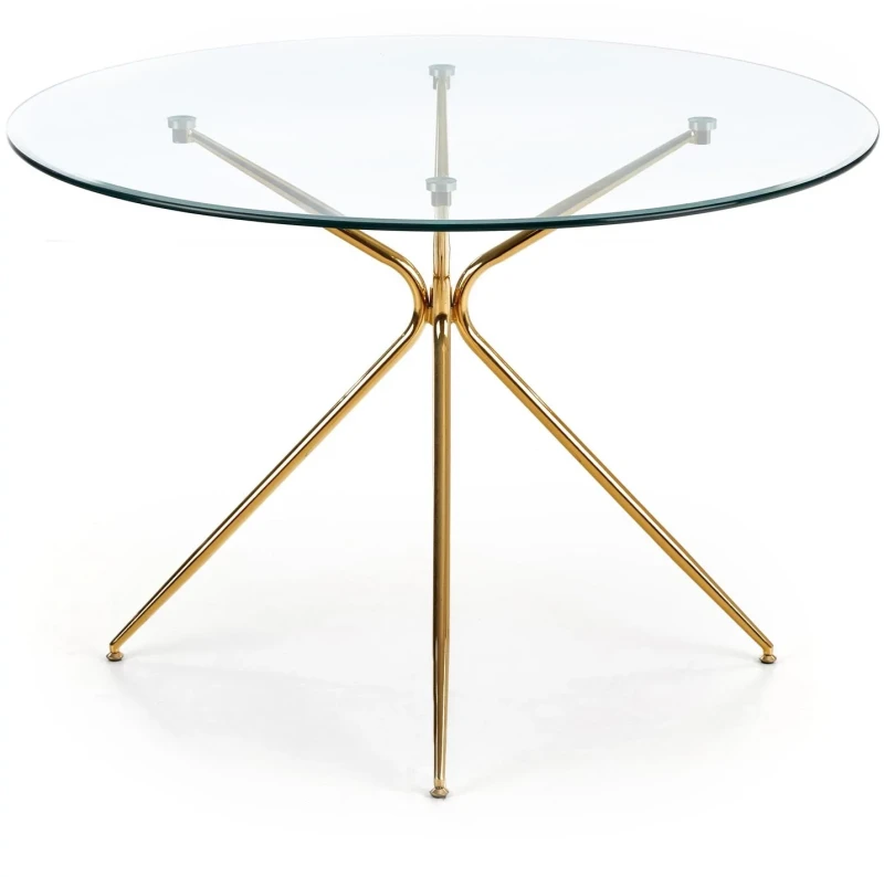 Stół okrągły Rondo 110cm do jadalni blat szkło bezbarwny/złoty