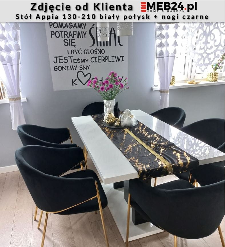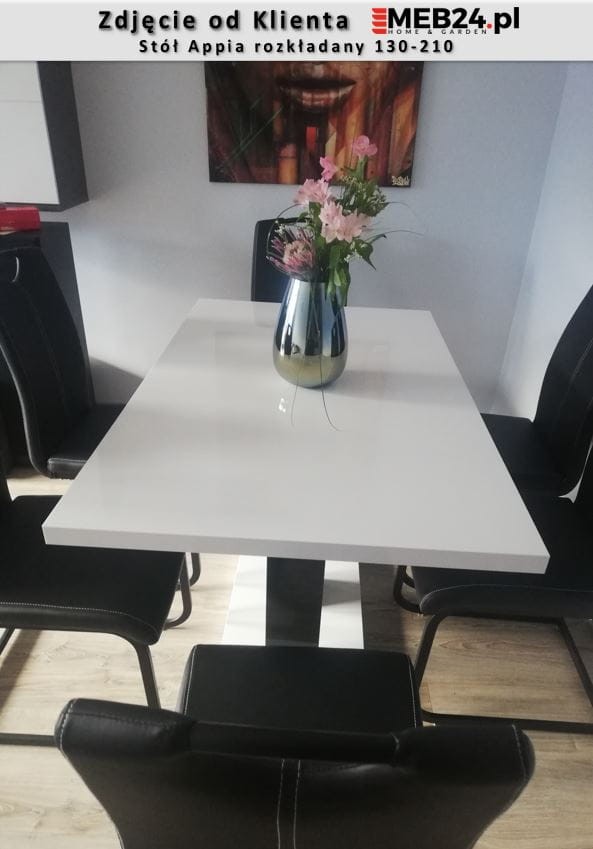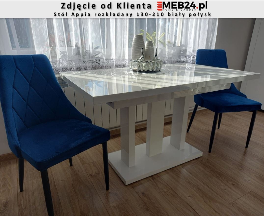 Stół Appia to stylowa i oryginalna propozycja nowoczesnego, rozkładanego stołu do jadalni lub pokoju dziennego. Dzięki opcji rozsuwania, stół można łatwo złożyć i rozłożyć przygotowując go do przyjęcia większej liczby gości. Zastosowanie dwóch wkładek umożliwia wydłużenie stołu do 210 cm pozwalając zmieścić wygodnie 8 osób. Stół wykonany został z wysokiej jakości płyt w kolorze białego połysku. Stół rozkładany Appia zaprojektowany i wykonany został w Polsce co jest gwarancją jakości - Wspieraj