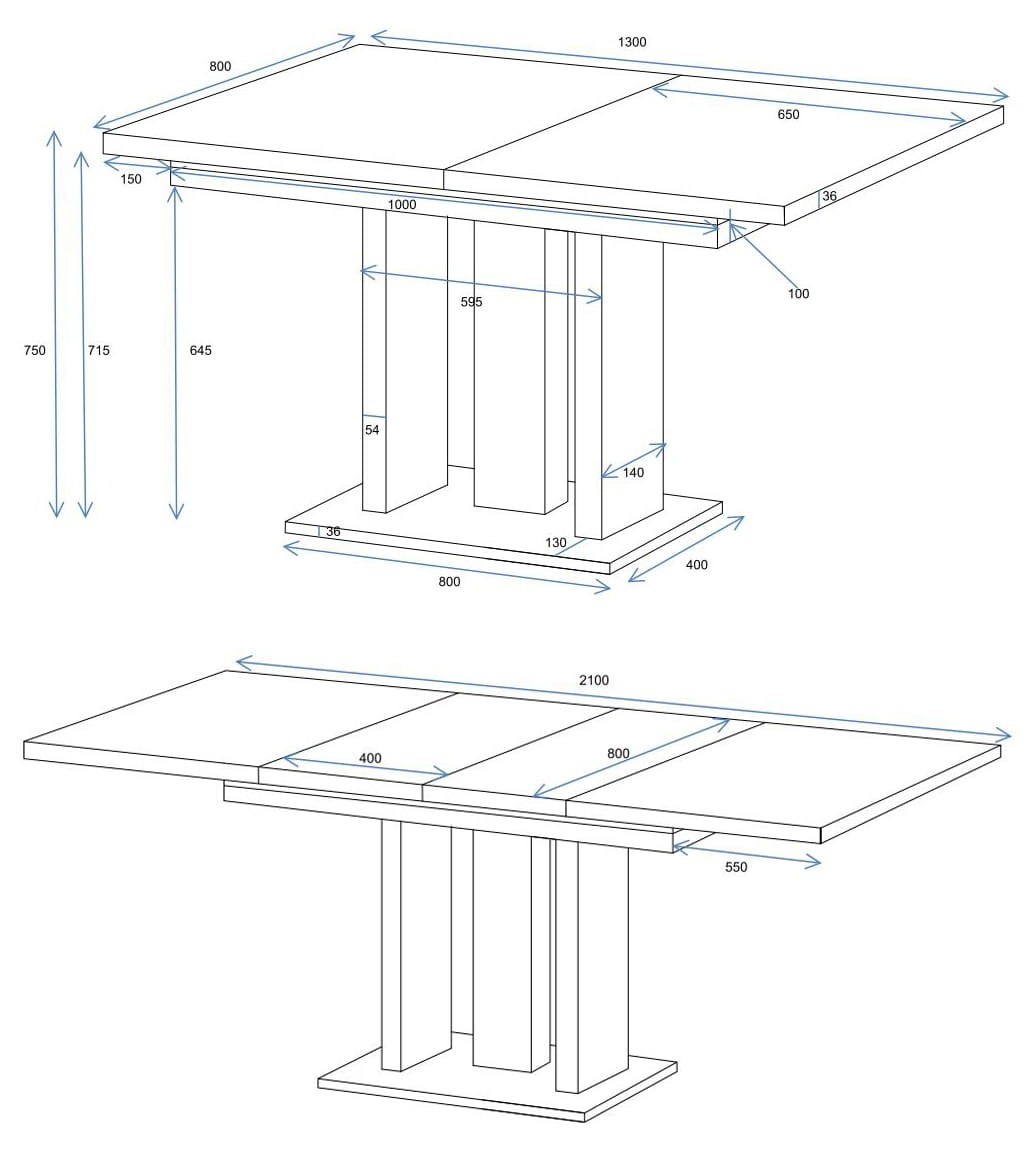 - ważne: blaty wykonane z płyty meblowej należy czyścić rozsunięte i wycierać dokładnie do sucha szczególnie na krawędziach oraz miejscach styku, pod wpływem złego użytkowania lub konserwacji i zamoczenia tych miejsc może dojść do puchnięcia blatów z winy użytkownika, co nie podlega reklamacji