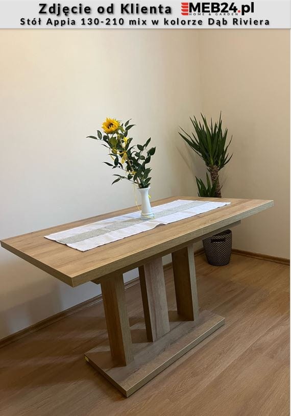 Stół Appia to stylowa i oryginalna propozycja nowoczesnego, rozkładanego stołu do jadalni lub pokoju dziennego. Dzięki opcji rozsuwania, stół można łatwo złożyć i rozłożyć przygotowując go do przyjęcia większej liczby gości. Zastosowanie dwóch wkładek umożliwia wydłużenie stołu do 210 cm pozwalając zmieścić wygodnie 8 osób. Stół wykonany został z wysokiej jakości płyt o wyczuwalnej strukturze, w różnych kolorach idealnie odwzorowujących np. naturalne drewno. Stół rozkładany Appia zaprojektowany i wykonany został w Polsce co jest gwarancją jakości - Wspieraj