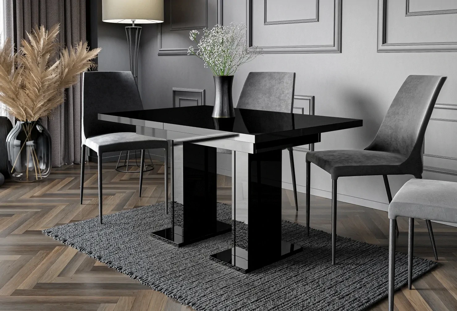 - Nowoczesny i minimalistyczny design: Stół dostępny jest w dwóch wariantach kolorystycznych: Black Gloss (czarny połysk) i White Gloss (biały arktyczny połysk). Połyskujące wykończenie dodaje wnętrzu elegancji, a jednocześnie tworzy efekt przestronności. Wysokiej jakości akrylowa powierzchnia zapewnia nie tylko piękny wygląd, ale także trwałość i odporność na codzienne użytkowanie.