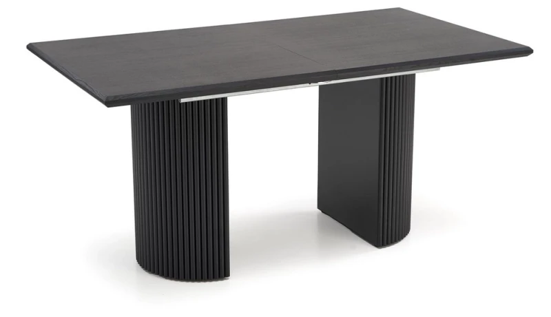 Stół BOLERO to doskonała propozycja dla osób, które cenią elegancki design i praktyczne rozwiązania. Jego ponadczasowy styl łączy naturalne inspiracje z nowoczesną formą, dzięki czemu idealnie wkomponuje się zarówno w klasyczne, jak i nowoczesne aranżacje wnętrz. Rozkładany blat umożliwia szybkie zwiększenie powierzchni użytkowej – z 160 cm aż do 250 cm – co czyni ten model idealnym wyborem podczas rodzinnych spotkań, świąt czy przyjęć w gronie znajomych. Wykonany z naturalnej okleiny dębowej i stabilnej, malowanej proszkowo stali, stół BOLERO zachwyca jakością wykonania i trwałością, jednocześnie wprowadzając do wnętrza nutę wysublimowanego stylu. Subtelne frezowania nóg w połączeniu z ciemnym, eleganckim blatem tworzą wyjątkową kompozycję, która przyciąga uwagę i nadaje wnętrzu charakteru. To idealny wybór do jadalni, salonu lub przestrzeni otwartej typu open space.