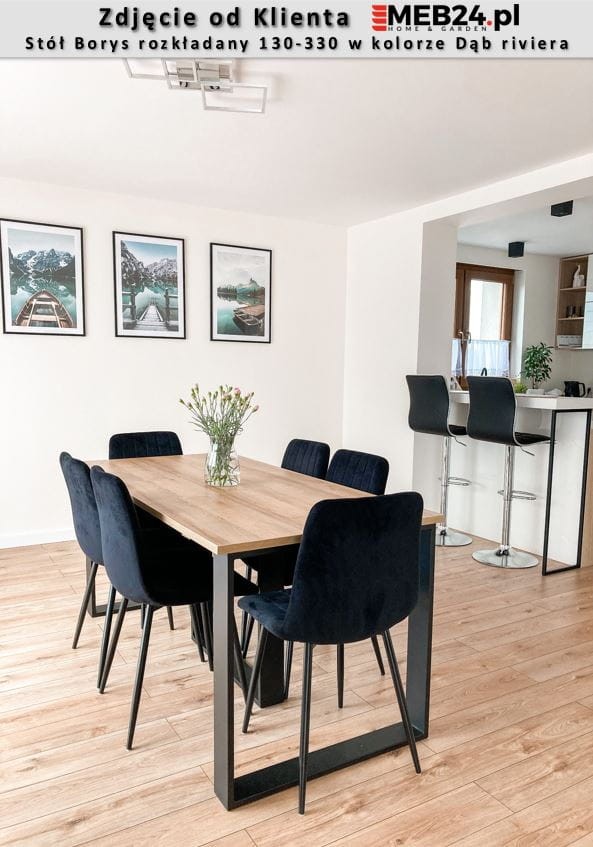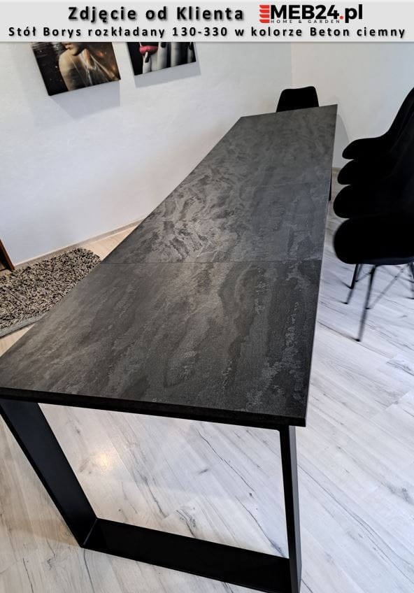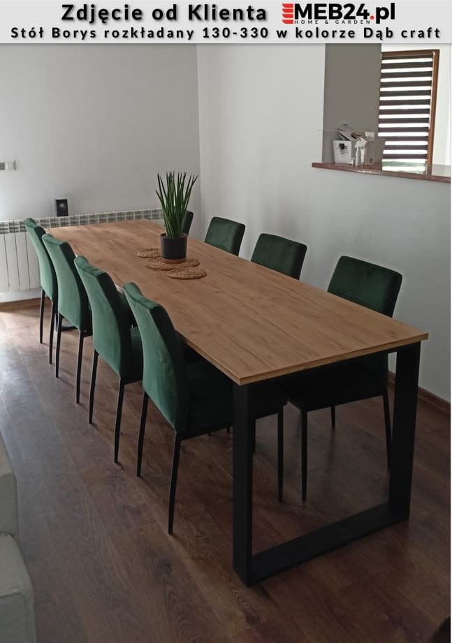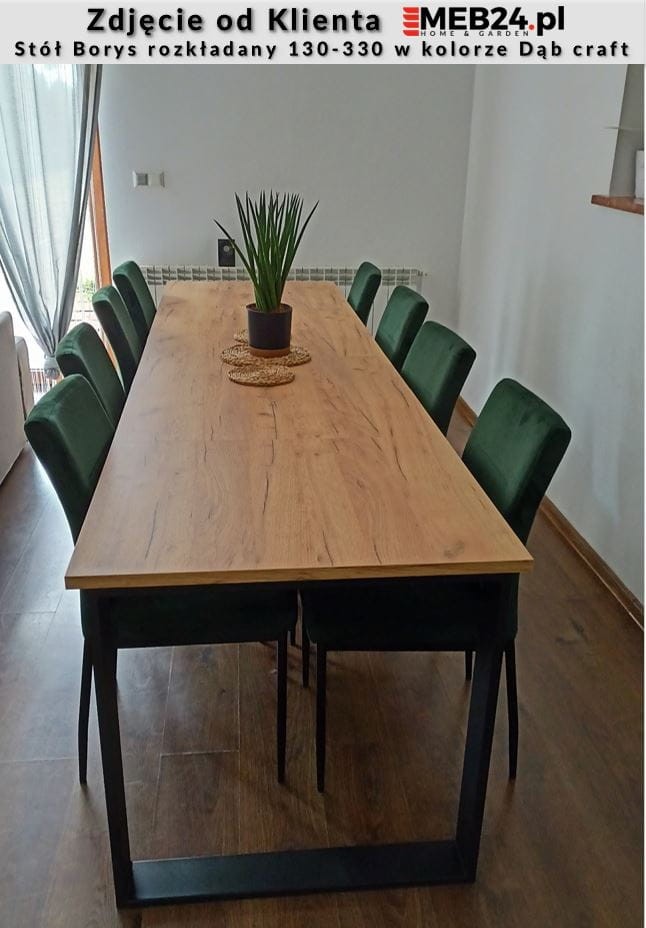 Stół Borys to stylowa i oryginalna propozycja nowoczesnego, rozkładanego stołu do jadalni lub pokoju dziennego. Stół można łatwo złożyć i rozłożyć przygotowując go do przyjęcia większej liczby gości. Zastosowanie pięciu wkładek umożliwia wydłużenie stołu do 330 cm pozwalając zmieścić wygodnie 10 osób. Stół wykonany został z wysokiej jakości płyt o wyczuwalnej strukturze, w różnych kolorach idealnie odwzorowujących np. naturalne drewno. Stół rozkładany Borys zaprojektowany i wykonany został w Polsce co jest gwarancją jakości - Wspieraj