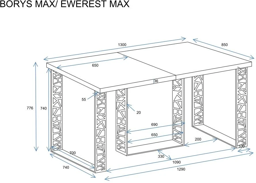 - dodatkowe wkładki do stołu przechowywane są poza jego konstrukcją a kwestia ich składowania pozostaje po stronie klienta