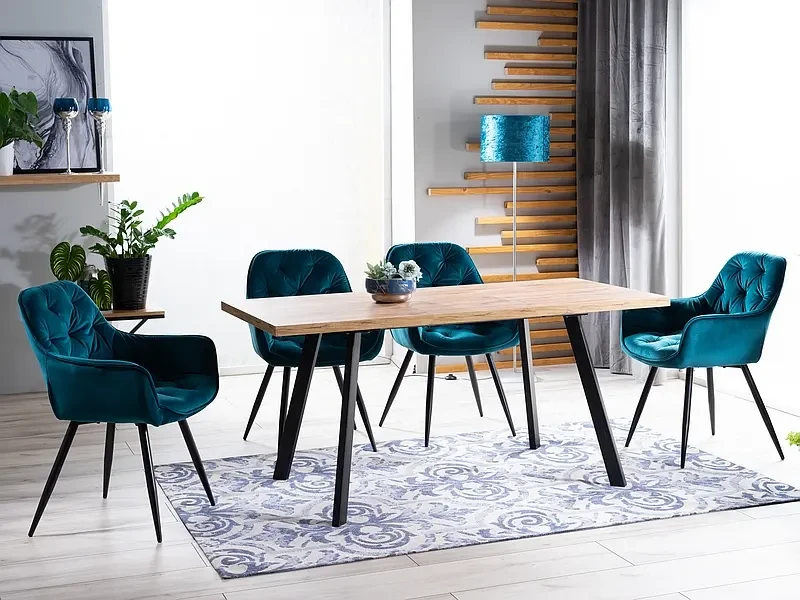 Stół Brick to propozycja klasycznego, rozkładanego stołu do jadalni lub pokoju dziennego. Jego prosty i minimalistyczny design doskonale sprawdzi się zarówno w nowoczesnych, jak i bardziej tradycyjnych wnętrzach. Mebel charakteryzuje się niewielkimi gabarytami, co pozwoli na efektywne zagospodarowanie nawet ograniczonej przestrzeni. W opcji złożonej będzie idealny do codziennych posiłków, a w wersji rozłożonej, gdy potrzebujemy więcej miejsca na blacie. Blat stołu wykonany został z wysokiej jakości, odpornej na uszkodzenia mechaniczne płyty MDF oraz okleiny w wybarwieniu dąb artisan, co nadaje mu naturalnego charakteru. Stelaż natomiast wykonany jest z solidnego metalu w kolorze czarnym, co dodaje meblowi eleganckiego wyglądu. Stół Brick może być rozłożony do długości 160 cm, co pozwala na swobodne ustawienie większej liczby krzeseł. Jest to idealny mebel do jadalni, gdzie można zasiąść z rodziną i przyjaciółmi podczas wspólnych posiłków.