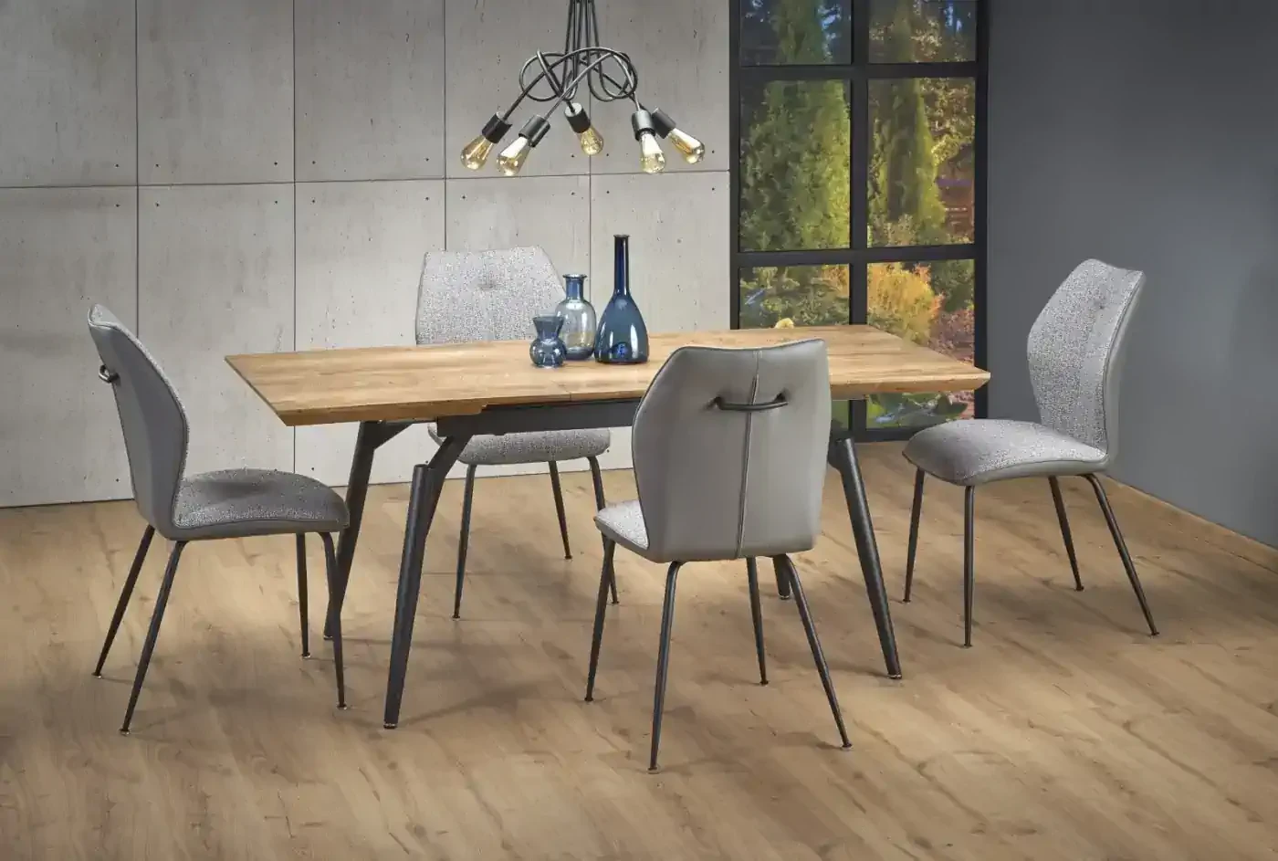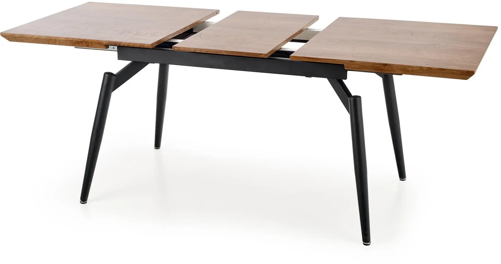 Stół rozkładany Cambell to elegancki i funkcjonalny mebel, który doskonale wpisuje się w nowoczesne wnętrza. Został zaprojektowany z myślą o praktycznym użytkowaniu oraz estetycznym wyglądzie. Dzięki funkcji rozkładania, jego długość można zwiększyć z 140 cm do 180 cm, co sprawia, że jest idealny do większych pomieszczeń, oferując dużo miejsca na rodzinne spotkania czy przyjęcia. Blat w kolorze naturalnego dębu dodaje wnętrzu ciepła i przytulności, podczas gdy czarne nogi wykonane z malowanej proszkowo stali podkreślają nowoczesny charakter stołu. Stół Cambell to idealny wybór dla osób ceniących nowoczesny design oraz funkcjonalność w jednym. Mebel został zaprojektowany i wykonany z najwyższą starannością, co jest gwarancją jego jakości i trwałości. Stół rozkładany Cambell to idealny mebel dla tych, którzy szukają funkcjonalności połączonej z nowoczesnym designem. Dzięki możliwości rozkładania, stół ten jest niezwykle praktyczny i elastyczny w użytkowaniu. Jego solidna konstrukcja oraz estetyczny wygląd sprawiają, że jest doskonałym wyborem do nowoczesnych wnętrz. Kolorystyka blatu w naturalnym dębie oraz czarne nogi dodają elegancji i stylu, czyniąc stół Cambell nie tylko praktycznym, ale również atrakcyjnym elementem każdego wnętrza.