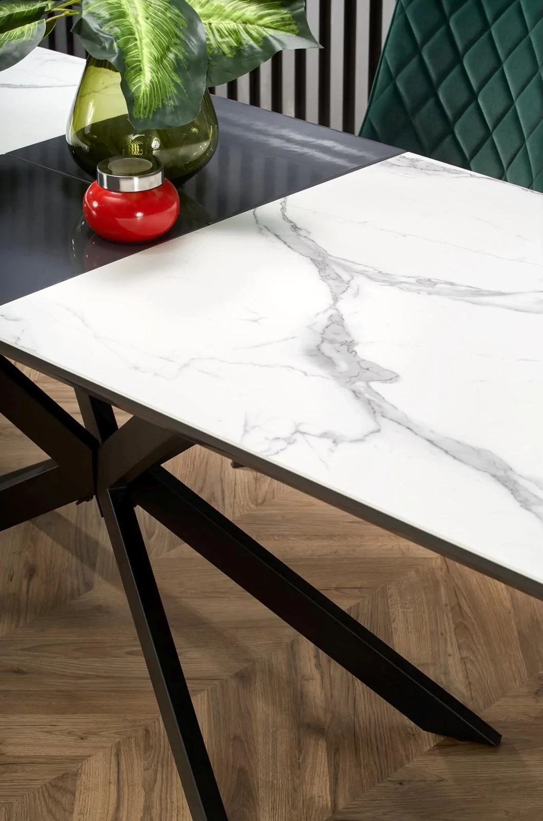 Stół rozkładany Diesel 160-200cm blat biały marmur/czarny