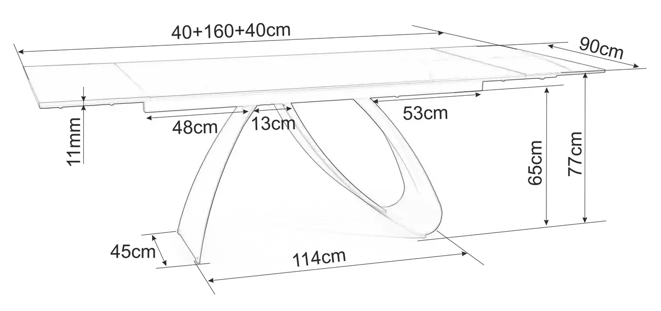 Wymiary stołu rozkładanego Diuna Ceramic: