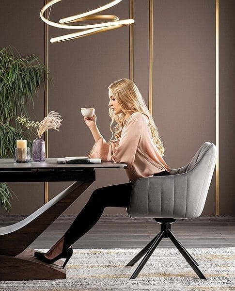 Stół Dolce to stylowa i oryginalna propozycja nowoczesnego, rozkładanego stołu do jadalni lub pokoju dziennego. Dzięki opcji rozsuwania, stół można łatwo złożyć i rozłożyć przygotowując go do przyjęcia większej liczby gości. Stół rozkłada się do 240 cm, pozwalając zmieścić wygodnie 8-10 osób. Dzięki nowoczesnej formie stół ten idealnie pasuje do wnętrz minimalistycznych, choć równie dobrze sprawdzi się w bardziej stylowych pomieszczeniach. Niewątpliwie stanie się głównym punktem każdej jadalni. Blat stołu Dolce został wykonany z wysokiej jakości szkła hartowanego z włoską powłoką ceramiczną imitującą marmur w kolorze szarym matowym. Całość opiera się na solidnej opływowej w kształcie podstawie wykonanej z płyty MDF w orzechowym wykończeniu.