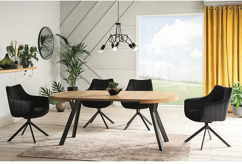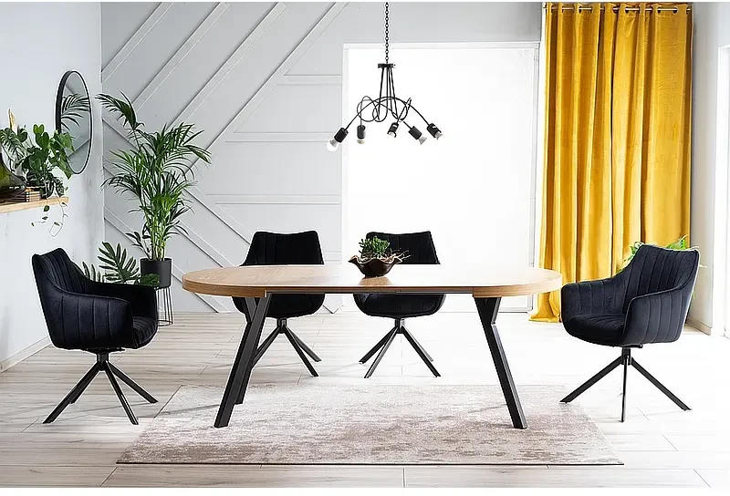 Stół Domingo to nietuzinowa propozycja mebla do wnętrz zarówno nowoczesnych, jak i klasycznych. Model Domingo łączy w sobie piękny design i funkcjonalność. Dzięki opcji rozsuwania, stół można łatwo złożyć i rozłożyć przygotowując go do przyjęcia większej liczby gości. Stół rozkłada się do 250 cm, pozwalając zmieścić wygodnie 12 osób. Blat stołu w okleinie naturalnej w kolorze czarnym umieszczony został na czterech czarnych metalowych nogach. Całość tworzy przyciągającą wzrok formę nadającą charakteru każdemu pomieszczeniu. Stół Domingo będzie idealnym uzupełnieniem wnętrza w stylu industrialnym i loftowym, gdzie królują oszczędność formy i prostota.