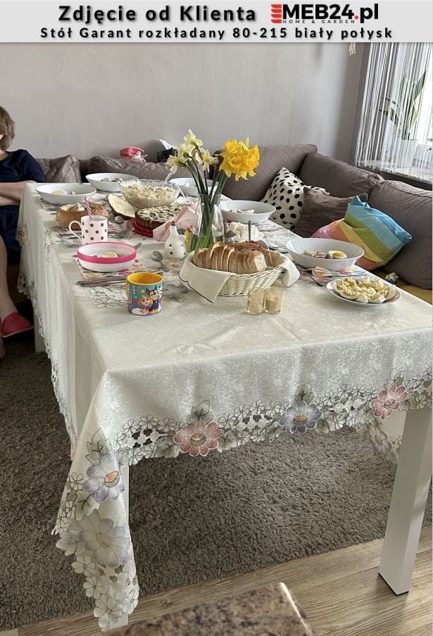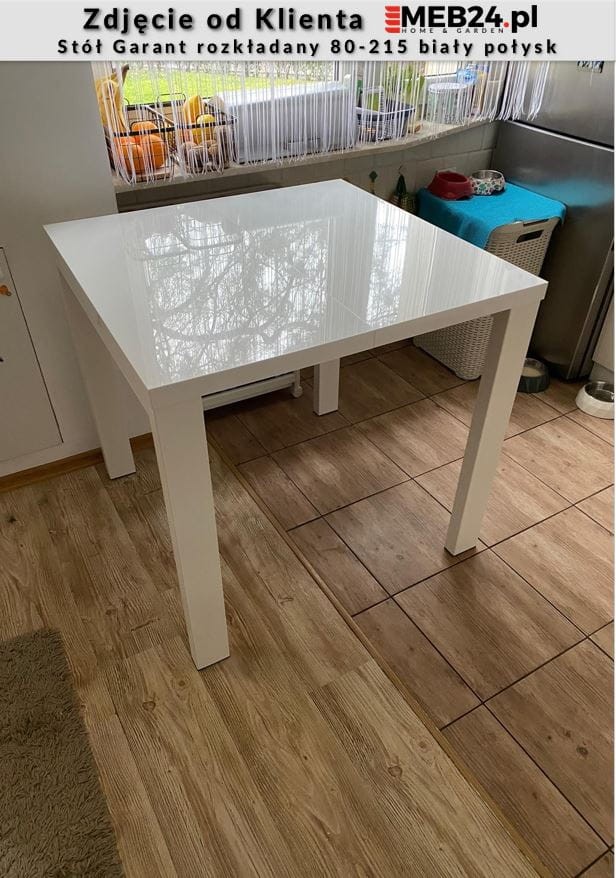 Stół Garant to prosta i stylowa propozycja nowoczesnego, rozkładanego stołu do jadalni lub pokoju dziennego. Stół można łatwo złożyć i rozłożyć przygotowując go do przyjęcia większej liczby gości. Zastosowanie trzech wkładek umożliwia wydłużenie stołu do 215 cm pozwalając zmieścić wygodnie 8 osób. Stół wykonany został z wysokiej jakości płyt w kolorze białego połysku. Stół rozkładany Garant zaprojektowany i wykonany został w Polsce co jest gwarancją jakości - Wspieraj