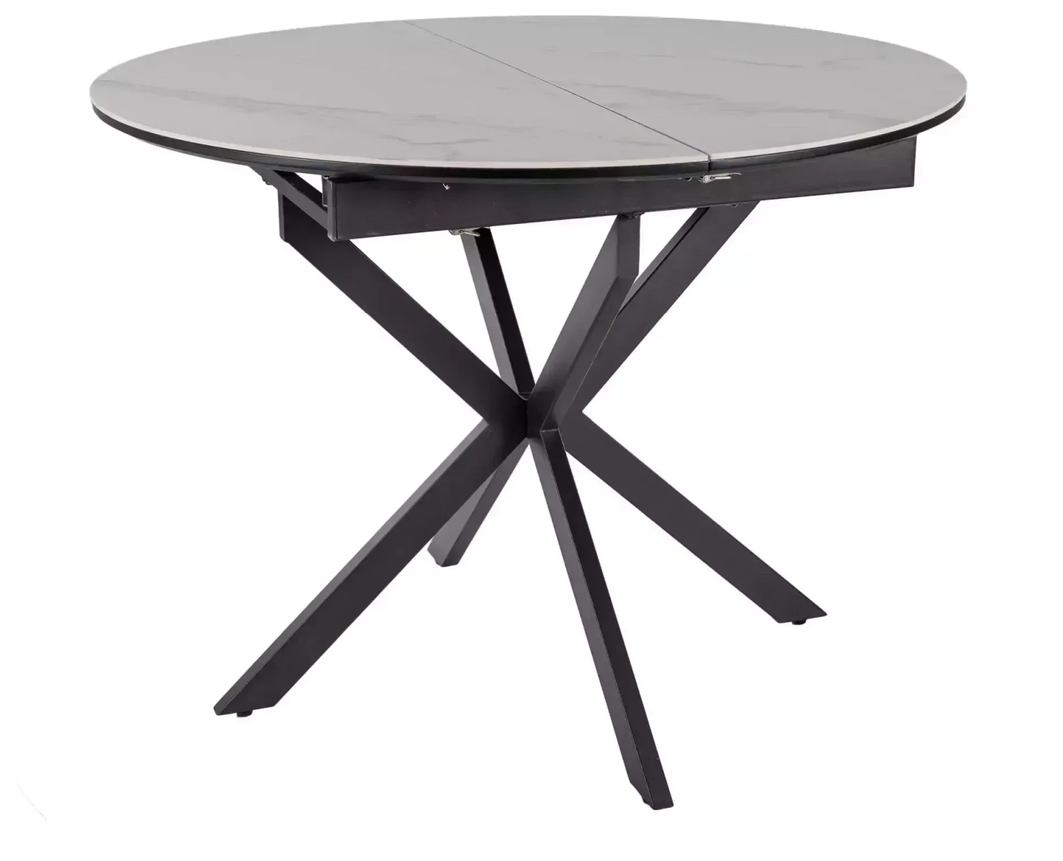 Stół Gaston Ceramic to połączenie elegancji, funkcjonalności i nowoczesnego designu, które doskonale wpisze się w stylowe wnętrza salonu lub jadalni. Jego okrągły blat z ceramiki w wykończeniu biały mat zachwyca subtelnym marmurowym efektem i ponadczasowym urokiem, jednocześnie będąc wyjątkowo odpornym na zarysowania, wysokie temperatury czy wilgoć. Rozkładana konstrukcja pozwala na błyskawiczne powiększenie powierzchni stołu z 100 do aż 135 cm długości, co sprawia, że Gaston idealnie sprawdzi się zarówno na co dzień, jak i podczas rodzinnych spotkań czy przyjęć – z łatwością pomieści do 6 osób. Solidna metalowa podstawa w czarnym macie nie tylko nadaje całości industrialnego charakteru, ale gwarantuje także wyjątkową stabilność i trwałość przez lata. Gaston to stół, który łączy w sobie estetykę i wygodę użytkowania – idealny wybór dla osób poszukujących praktycznych, ale zarazem stylowych rozwiązań do nowoczesnego wnętrza.