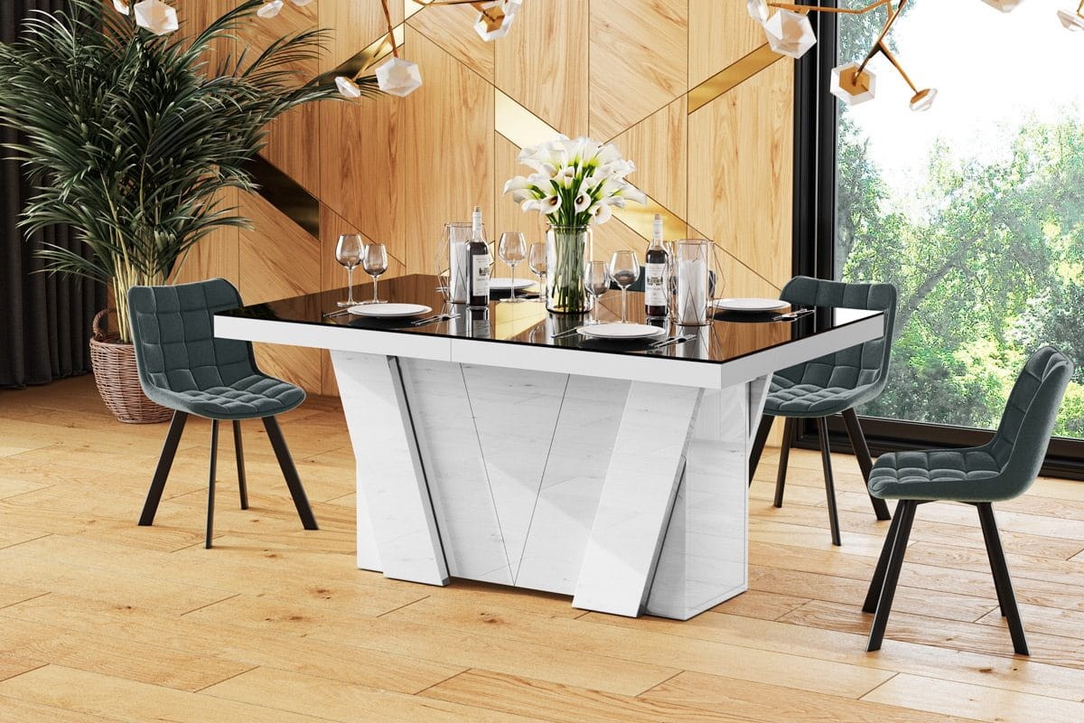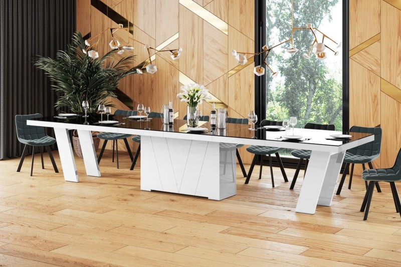 Stół rozkładany GRANDE 160-412 czarno-biały połysk
