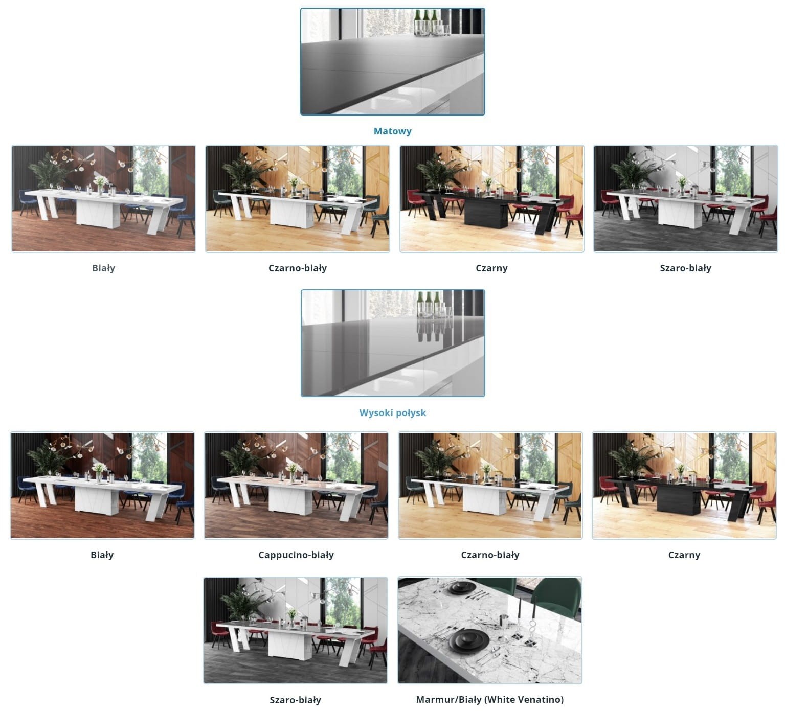 Stół rozkładany Grande 160 dostępny jest w kolorach: