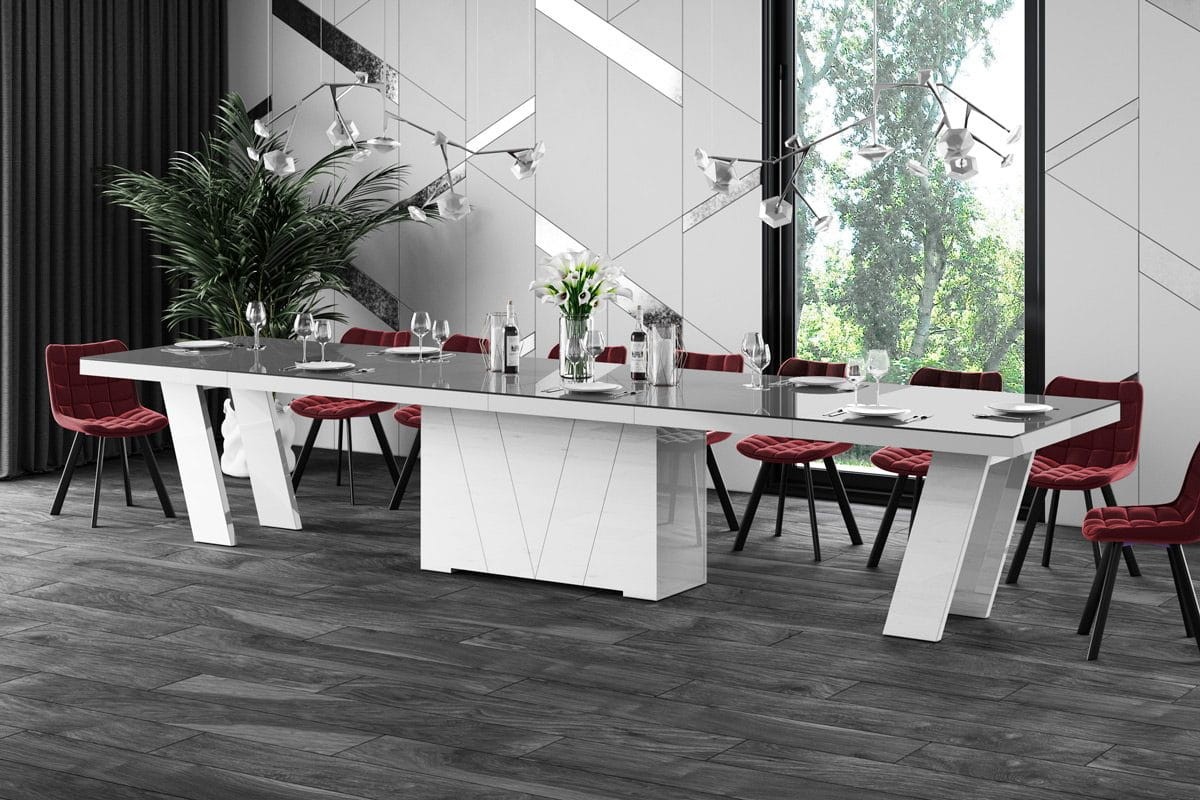 Stół rozkładany GRANDE 160-412 szaro-biały połysk