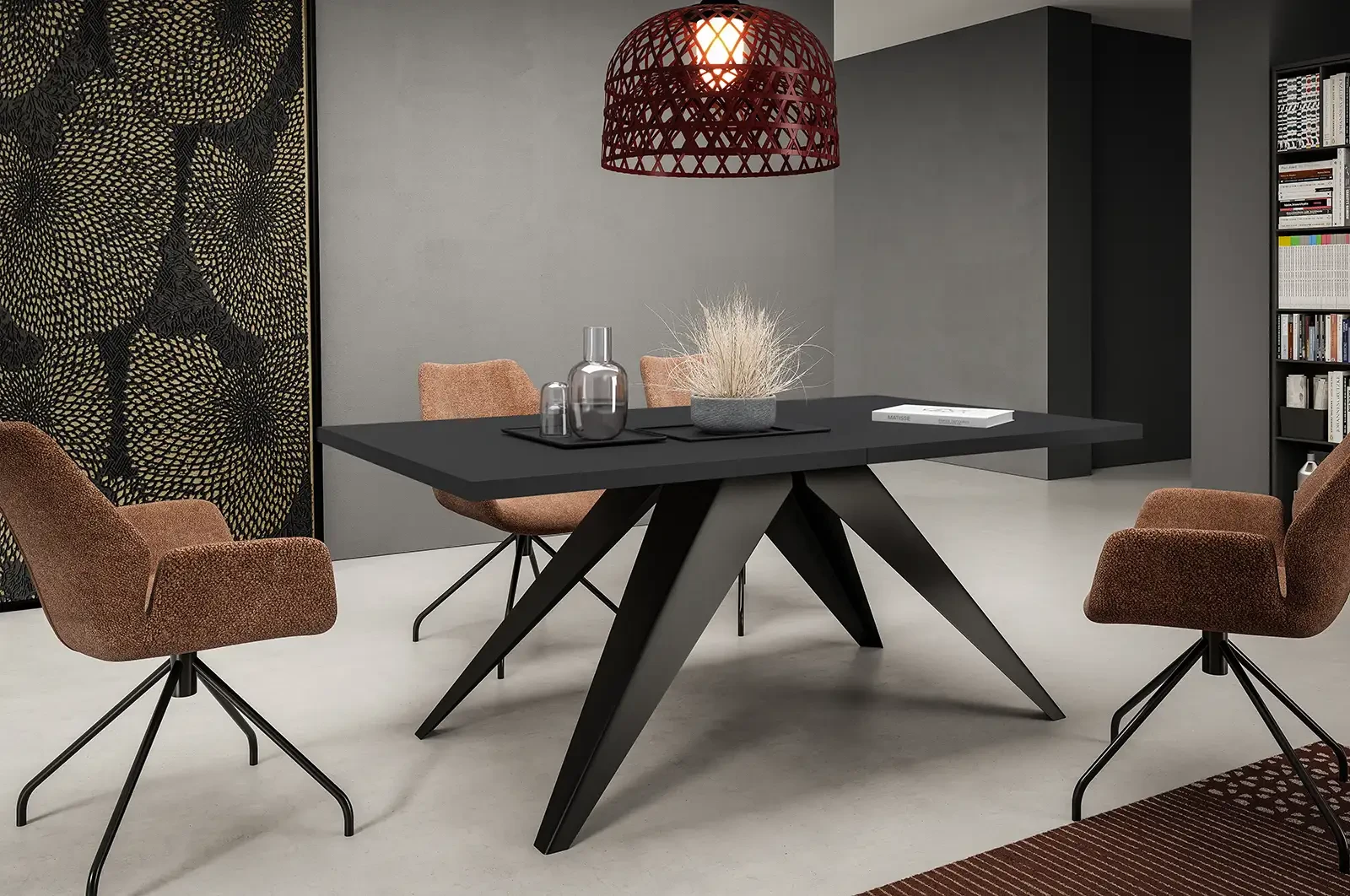 Stół Ronic zaprojektowany z myślą o nowoczesnych wnętrzach, łączy w sobie prostotę formy z imponującą solidnością. Jego niewątpliwym atutem jest stabilność, którą zapewniają cztery solidne wykonane ze stali malowanej proszkowo nogi, które gwarantują nie tylko wytrzymałość, ale także dodają meblowi nowoczesnego charakteru. Ich unikalna forma, zbiegająca się ku środkowi, tworzy efektowną wizualnie bazę. Blat stołu wykonany został z wysokiej jakości płyty laminowanej o grubości 36 mm, co zapewnia trwałość oraz łatwość w utrzymaniu czystości. Stół Ronic oferuje również praktyczne rozwiązania, takie jak możliwość rozszerzenia blatu do długości 260 cm dzięki dwóm wkładkom o szerokości 50 cm każda. Dzięki temu mebel może być łatwo dostosowany do większej liczby gości lub większej przestrzeni. Stół rozkładany Ronic zaprojektowany i wykonany został w Polsce co jest gwarancją jakości - Wspieraj