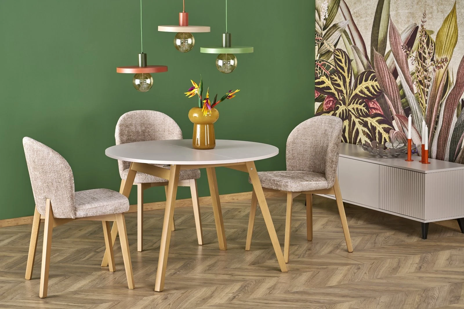Stół RUBEN to kwintesencja funkcjonalnego designu, który idealnie łączy estetykę z praktycznym podejściem do codziennego użytkowania. Jego unikalna, zaokrąglona forma blatu oraz możliwość rozkładania sprawiają, że doskonale odnajdzie się zarówno w kameralnych wnętrzach, jak i podczas większych spotkań z rodziną czy przyjaciółmi. Ciepły odcień kaszmiru w połączeniu z naturalnym wybarwieniem bukowych nóg tworzy harmonijną i nowoczesną kompozycję, która pasuje zarówno do wnętrz skandynawskich, jak i nowoczesnych czy boho. Dzięki solidnej konstrukcji z litego drewna oraz trwałej płycie meblowej stół gwarantuje długowieczność i stabilność, nawet przy intensywnym użytkowaniu. RUBEN to nie tylko stół – to centralny punkt domowej przestrzeni, który łączy ludzi.