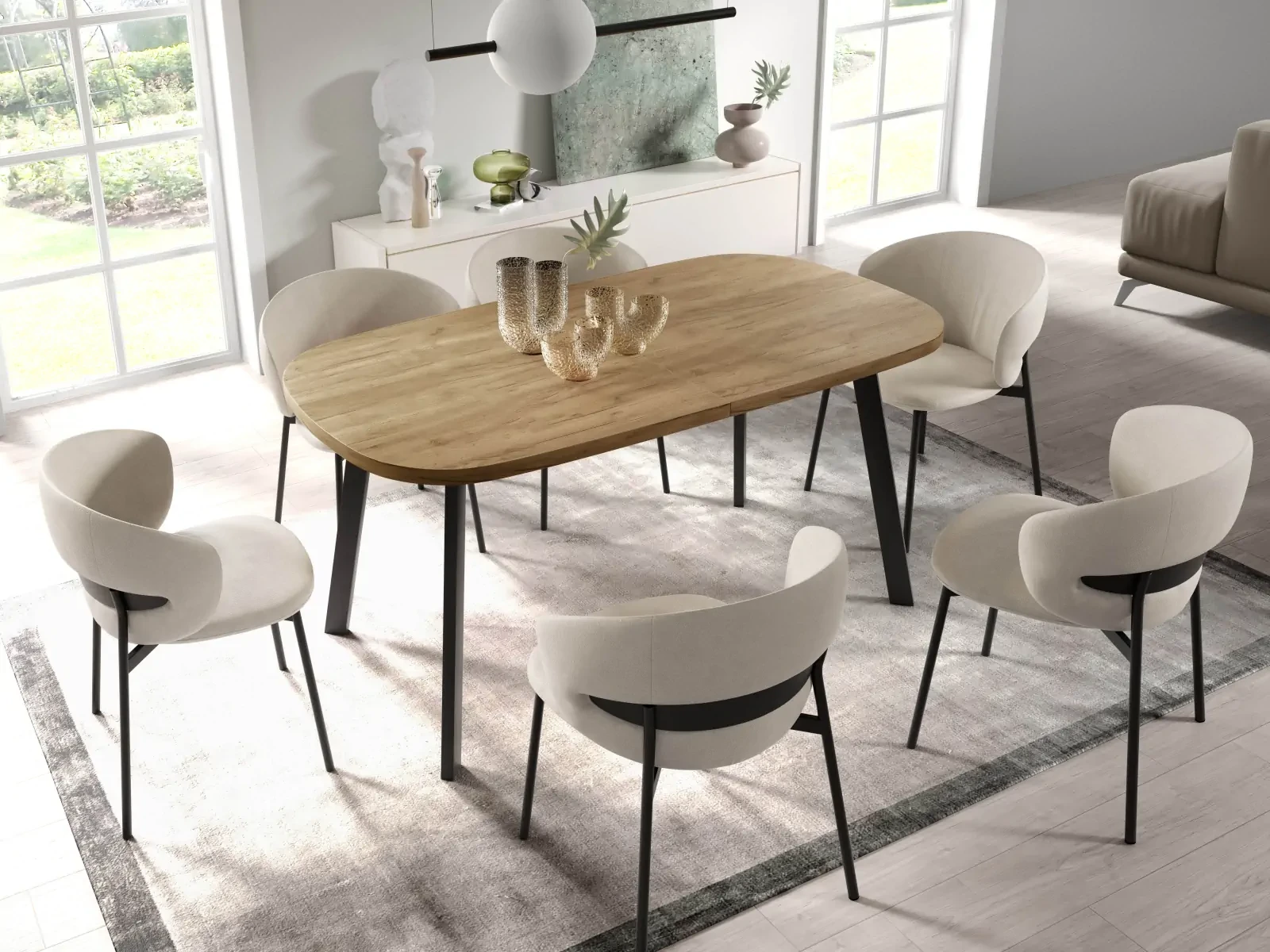 - owalny kształt blatu - idealny do wspólnych posiłków i spotkań rodzinnych