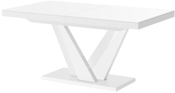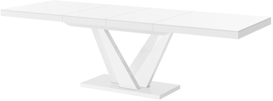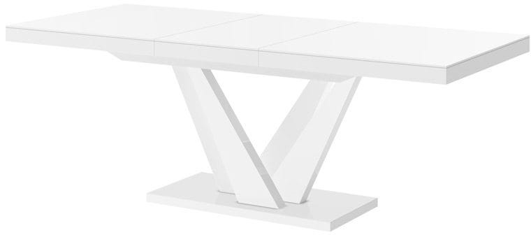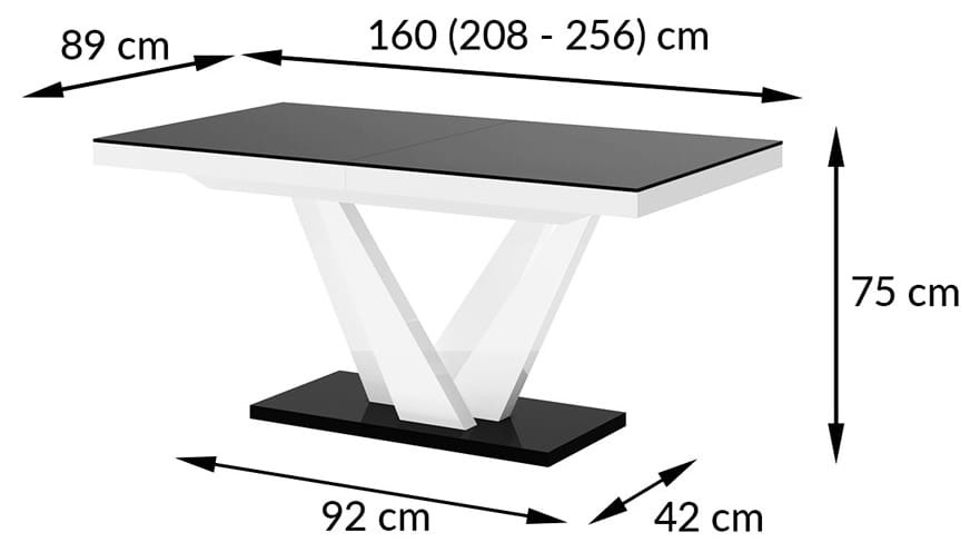 Stół VEGAS to oryginalny i niezwykle elegancki projekt kompaktowego stołu do salonu czy jadalni. Wyróżnia go niespotykany design (podstawa stołu w kształcie delikatnych czterech nóg ułożonych w kształt liter V) oraz funkcjonalność (rozkładany blat z miejscem do przechowywania dodatkowych wkładek pod blatem). Konstrukcja stołu, w przeciwieństwie do klasycznego modelu z czterema nogami, jest niezwykle stabilna i pozwala na swobodne usytuowanie większej liczby użytkowników. Wpasowując się w nowoczesne trendy blat stołu został pogrubiony.