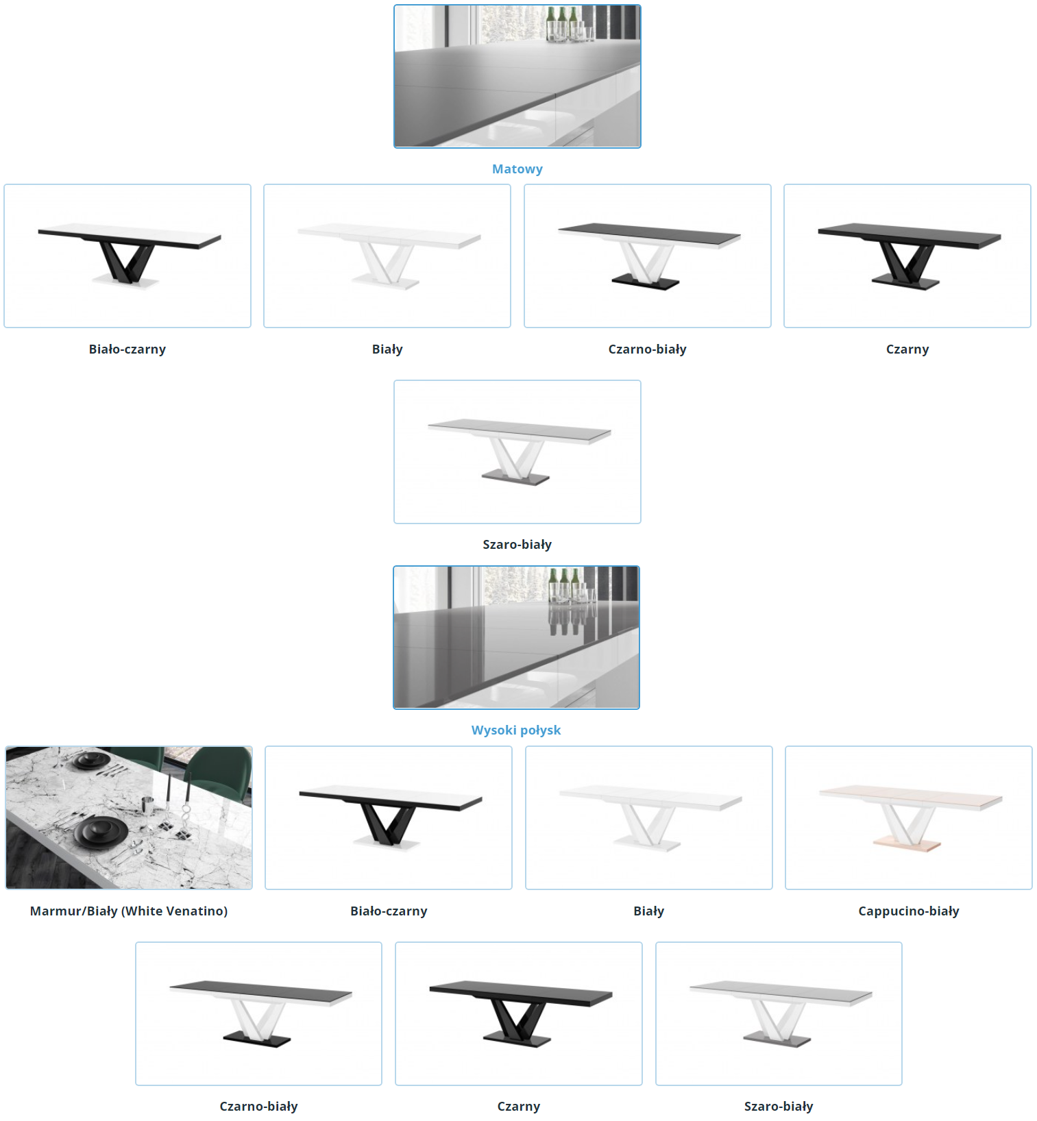 Stół rozkładany VEGAS dostępny jest w kolorach: