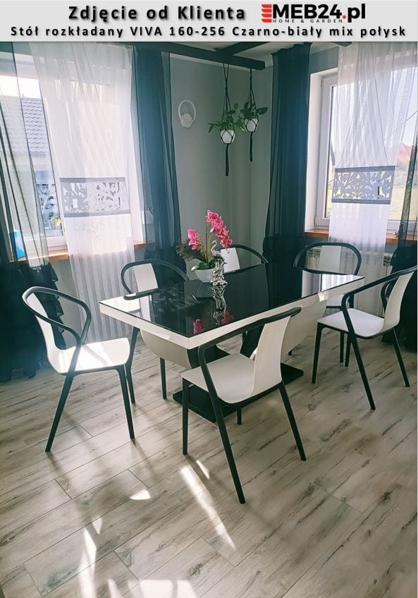 Stół rozkładany VIVA 160-256 Biało-czarny mix mat