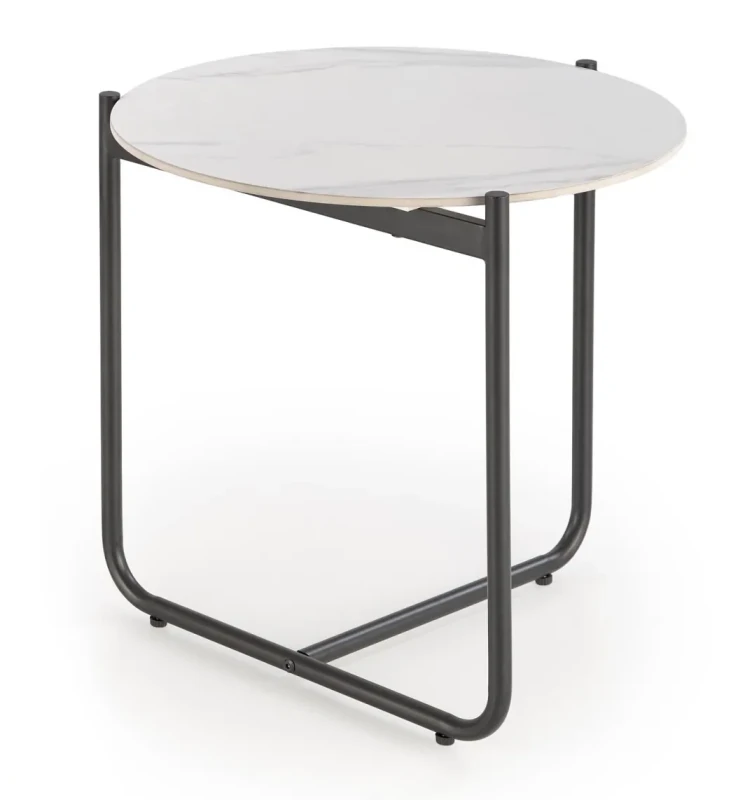 Stolik kawowy Acuna S okrągły do salonu 50 cm biały marmur