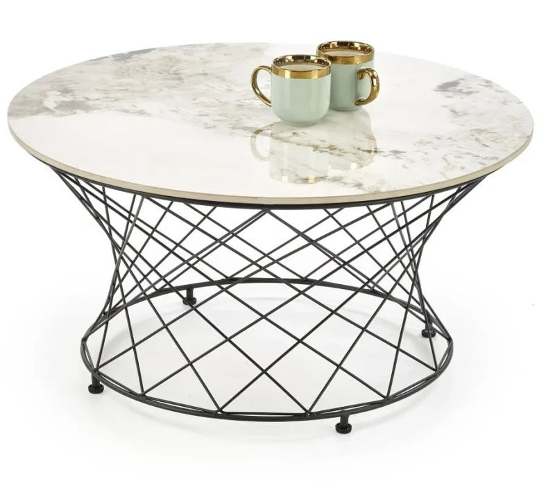 Stolik kawowy Alessia to propozycja dla osób ceniących wyrafinowany design i niebanalne połączenia materiałów. Blat imitujący beżowy marmur przyciąga wzrok eleganckim rysunkiem kamienia i subtelnym połyskiem, wprowadzając do wnętrza nutę luksusu. To doskonały wybór zarówno do klasycznych, jak i nowoczesnych aranżacji salonu. Stabilna podstawa z malowanej proszkowo stali nie tylko nadaje konstrukcji lekkości wizualnej, ale również zachwyca geometrycznym splotem, który przypomina artystyczną rzeźbę. Stolik o średnicy 80 cm oferuje optymalną przestrzeń do odłożenia filiżanki kawy, książki czy dekoracji, a jednocześnie nie przytłacza wnętrza. Jego forma sprzyja integracji – okrągły blat ułatwia rozmowy i tworzy przyjazną atmosferę podczas spotkań towarzyskich. Alessia to idealne połączenie funkcjonalności i stylu, które odmieni każde wnętrze.