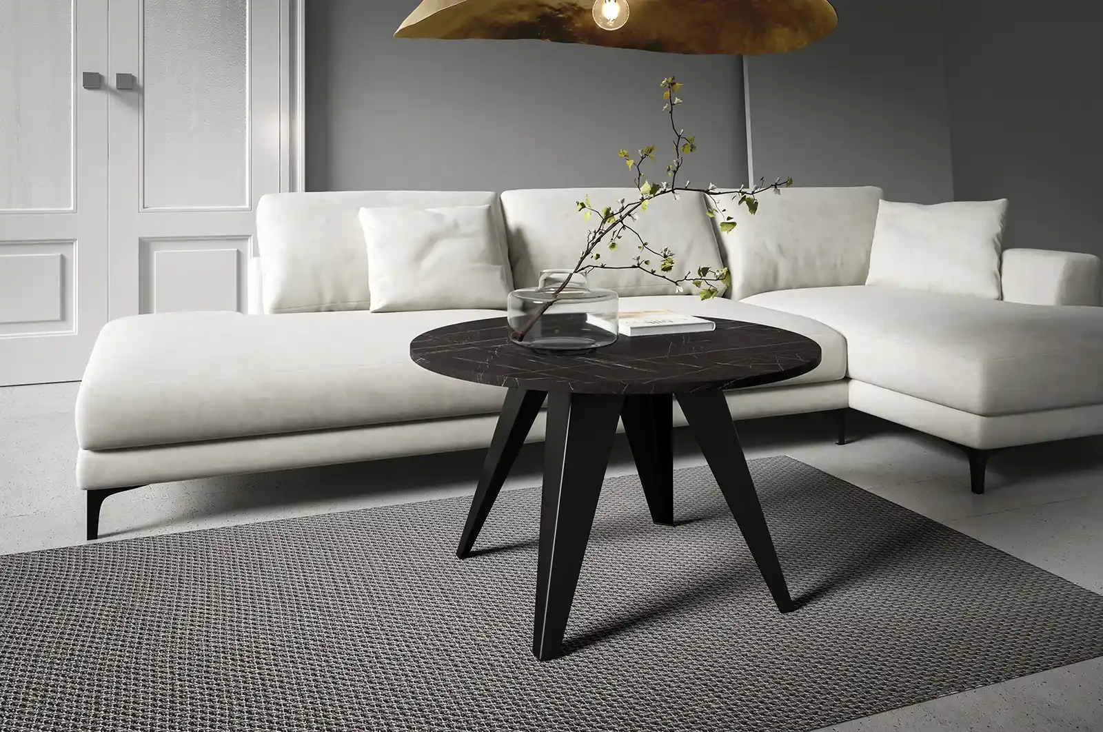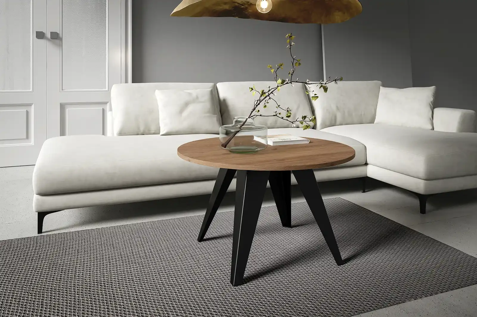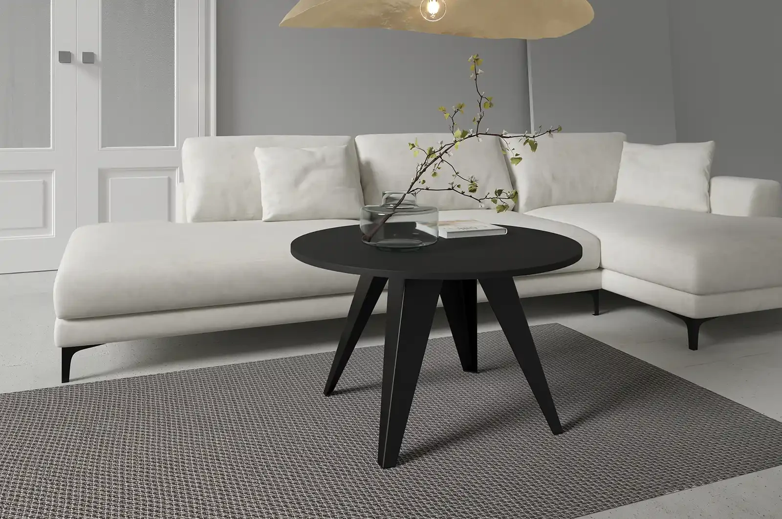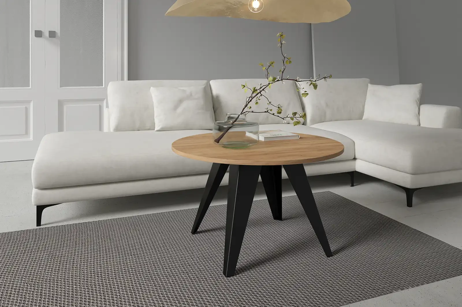Stolik kawowy Alisse to kwintesencja elegancji i funkcjonalności w jednym. Wykonany z solidnej stali, malowanej proszkowo, stelaż zapewnia trwałość i stabilność, co jest kluczowe dla każdego użytkownika ceniącego wysoką jakość mebli. Grubość blatu wynosząca 18 mm gwarantuje jego wytrzymałość i solidność. Dodatkowo, stolik oferuje możliwość dodania czarnego obrzeża, co pozwala na dopasowanie wyglądu do indywidualnych preferencji oraz istniejącego wystroju. Blat o średnicy 75 cm ma okrągły kształt, który dodaje nowoczesnego charakteru i sprawia, że stolik jest idealny do mniejszych oraz większych przestrzeni. Jego zaokrąglone krawędzie nie tylko są bezpieczne, ale także współgrają z wieloma stylami dekoracji wnętrz. Alisse FARE to doskonały wybór dla tych, którzy szukają stylowego i praktycznego rozwiązania do swojego wnętrza. Stolik kawowy Alisse zaprojektowany i wykonany został w Polsce co jest gwarancją jakości - Wspieraj
