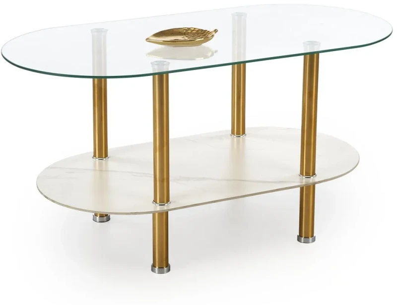 Stolik kawowy Ducat szklany do salonu 100 cm biały marmur/złoty