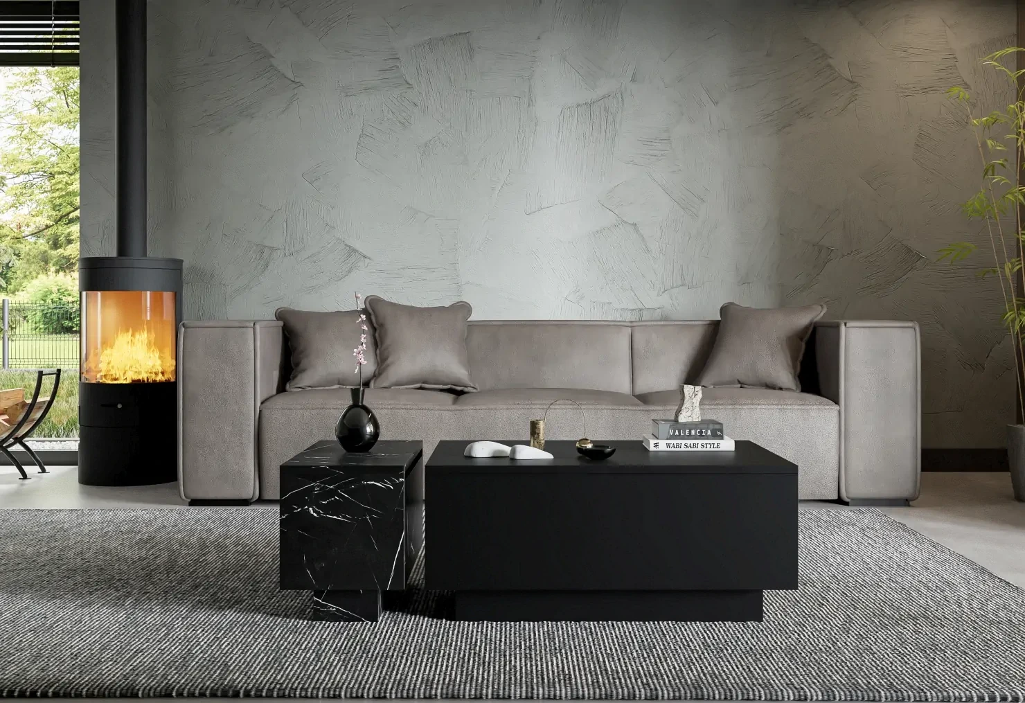 - Różnorodność kolorystyczna – dostępny w czterech nowoczesnych wariantach: eleganckim czarnym [bez dopłaty], klasycznej bieli z połyskiem [za dopłatą], luksusowym marmurem Black Royal [za dopłatą] oraz subtelnym marmurem Bianco [za dopłatą].