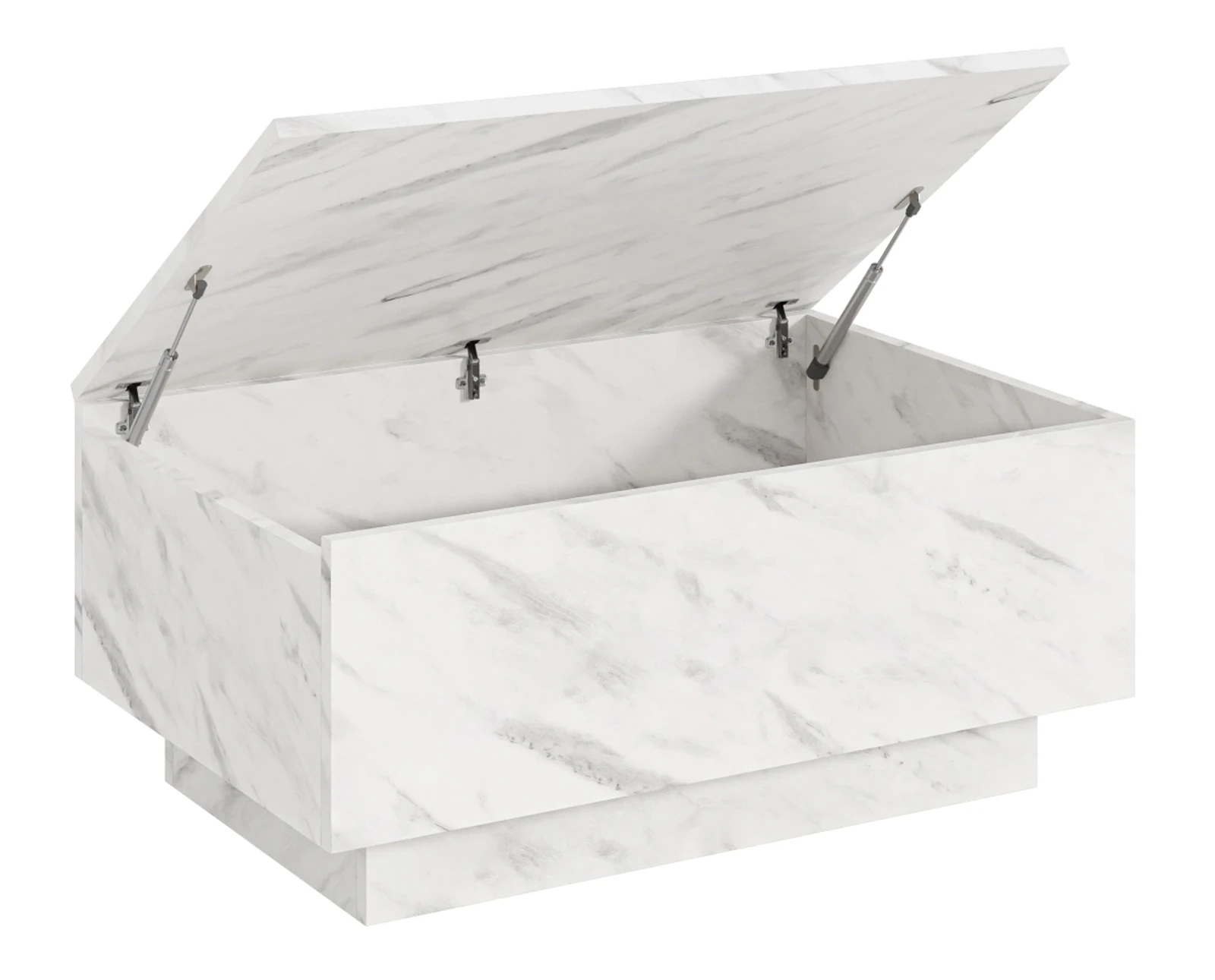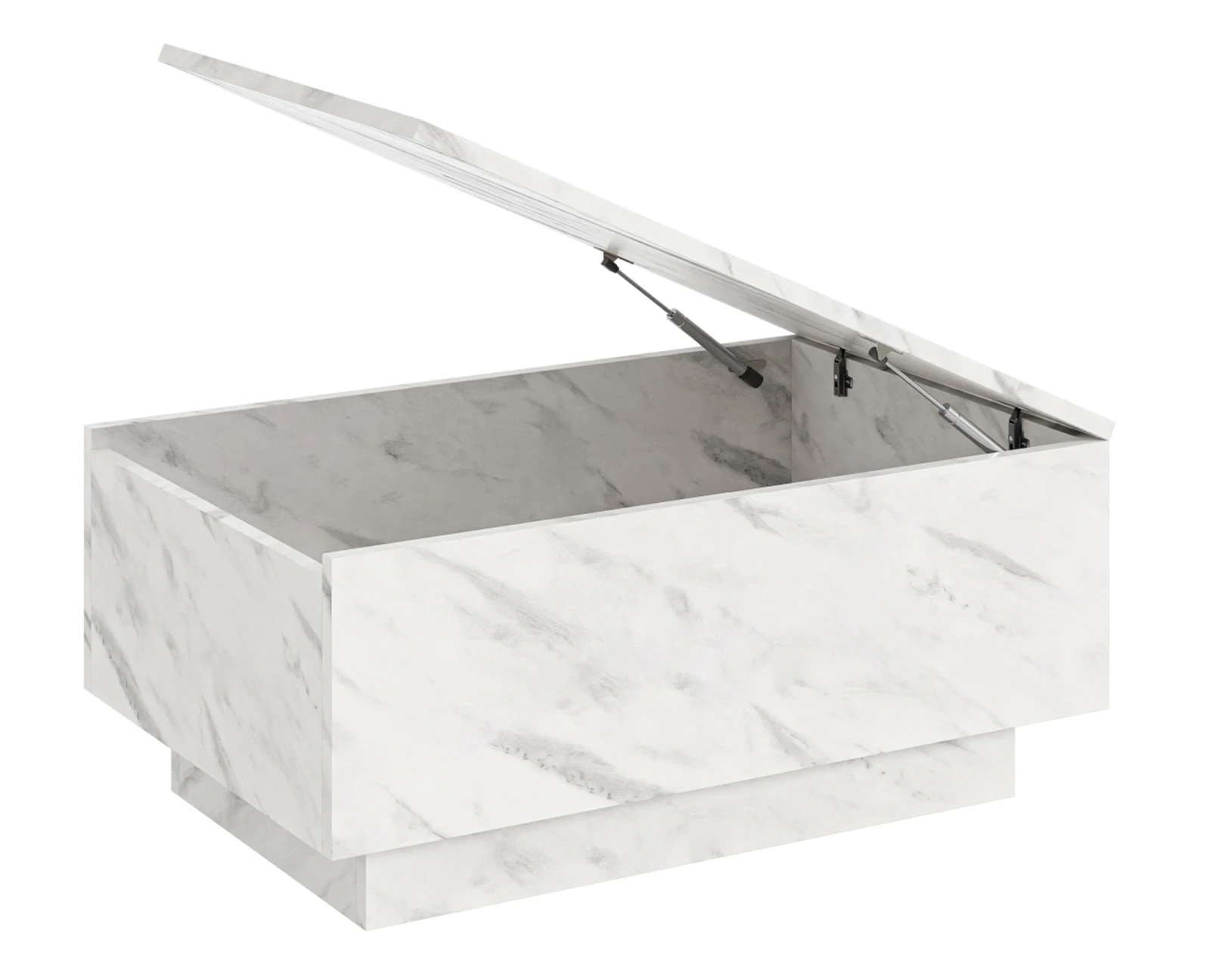 - Otwierany blat z siłownikiem gazowym – stolik wyposażono w mechanizm ułatwiający dostęp do przestronnego schowka pod blatem, który umożliwia przechowywanie drobiazgów, książek czy pilotów w estetyczny sposób.