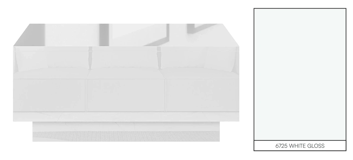 - Materiał wykonania w wersji White Gloss (biały arktyczny połysk): Płyta meblowa akrylowa wysoki połysk + elementy z płyty meblowej laminowanej.