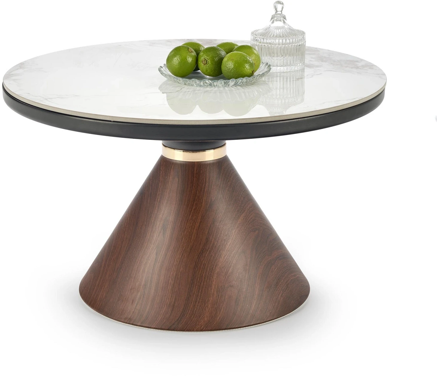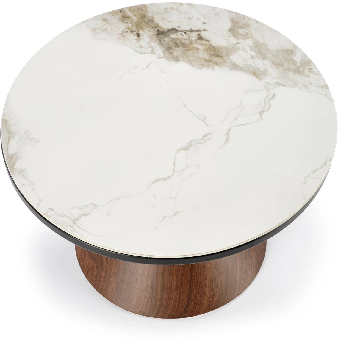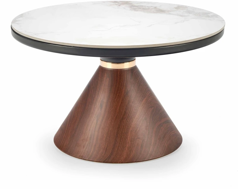 Stolik kawowy Genesis okrągły do salonu 70 cm biały marmur/orzechowy