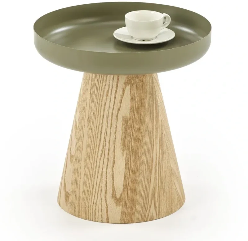 Ława GINA w wersji naturalny/zielony to propozycja dla osób, które cenią sobie wyrazisty design, a jednocześnie chcą wprowadzić do wnętrza elementy harmonii i przytulności. Jej nowoczesna forma łączy się z naturalnym wykończeniem podstawy oraz modnym, zielonym blatem, który doskonale wpisuje się w aktualne trendy wnętrzarskie. Okrągły blat o delikatnie podniesionych krawędziach nie tylko przyciąga wzrok, ale też zwiększa funkcjonalność mebla – zabezpieczając przed przypadkowym zsunięciem się przedmiotów. To idealny wybór jako stolik kawowy, pomocniczy przy sofie czy efektowny dodatek w sypialni.