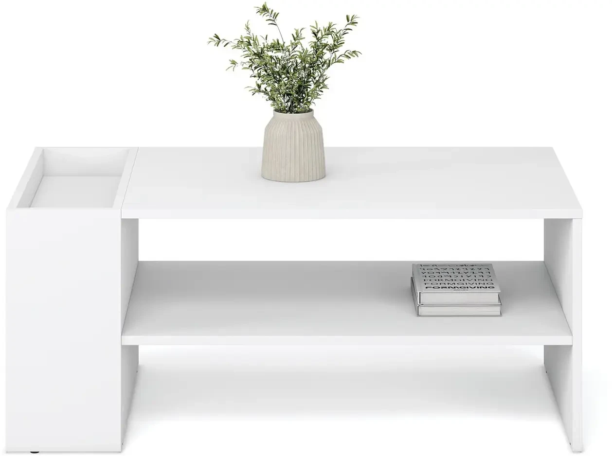 Stolik kawowy Murcia funkcjonalny prostokątny z półkami do salonu 100 cm biały