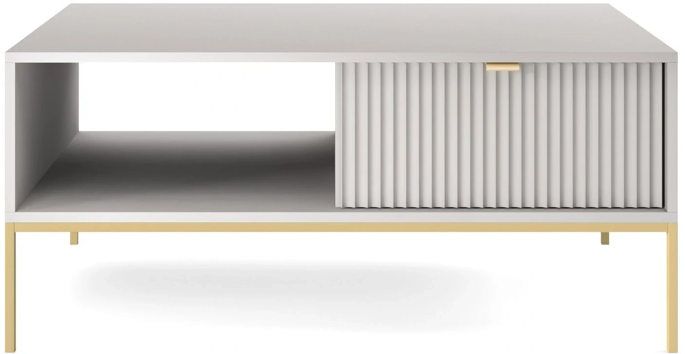 Stolik kawowy Nova, to nowoczesna propozycja mebla do salonu lub pokoju dziennego. Stolik został wyposażony w pojemną szufladę, która stanowi doskonałe miejsce do przechowywania pilotów, czasopism, czy innych podręcznych rzeczy. Nowoczesny, minimalistyczny design połączony z delikatnym szarym kolorem sprawia, że stolik Nova prezentuje się niezwykle stylowo i nowocześnie. Mebel został zaprojektowany i wykonany w Polsce co jest gwarancją jakości - Wspieraj