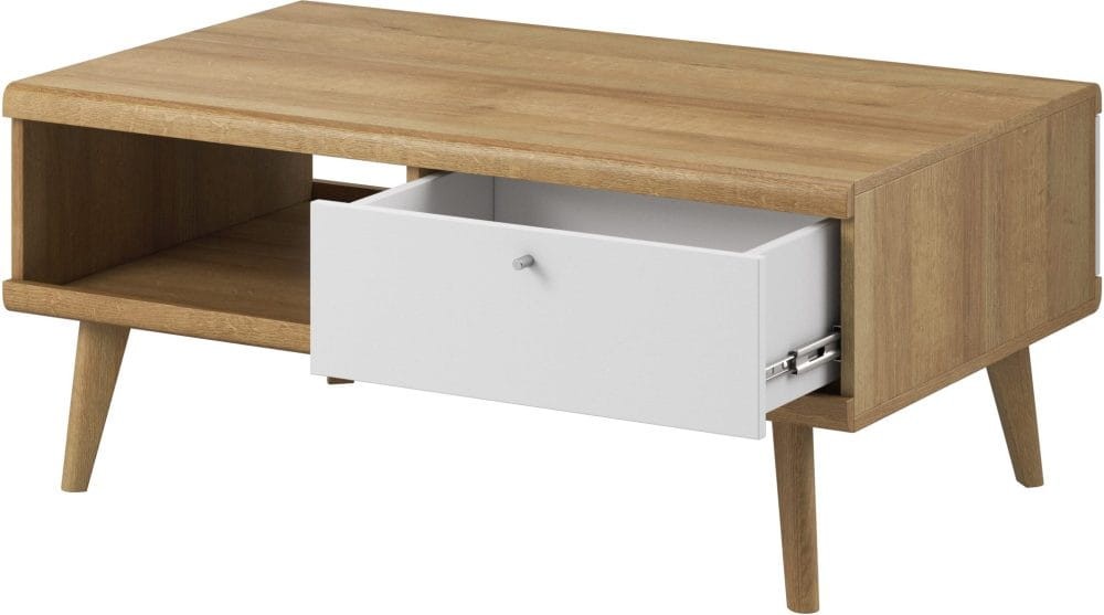 Stolik kawowy Primo to nowoczesna propozycja mebla do salonu lub pokoju dziennego. Stolik został wyposażony w pojemną szufladę, która stanowi doskonałe miejsce do przechowywania pilotów, czasopism, czy innych podręcznych rzeczy. Nowoczesny, minimalistyczny design połączony z delikatnym kolorem bieli sprawia, że stolik Primo prezentuje się niezwykle stylowo i nowocześnie. Mebel został zaprojektowany i wykonany w Polsce co jest gwarancją jakości - Wspieraj