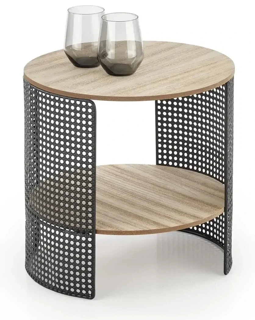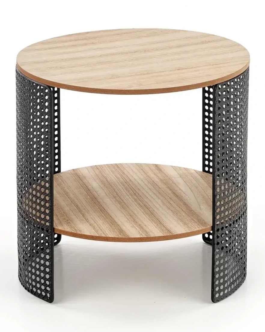 Stolik kawowy Trafica 41 cm ława okrągła z dolną półką naturalny/czarny