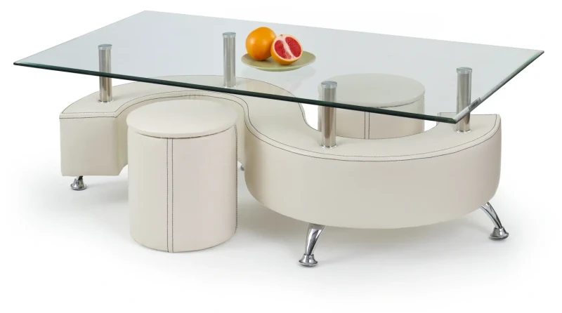 Stolik kawowy z pufami Nina 3 H szklany nowoczesny do salonu 130 cm biały