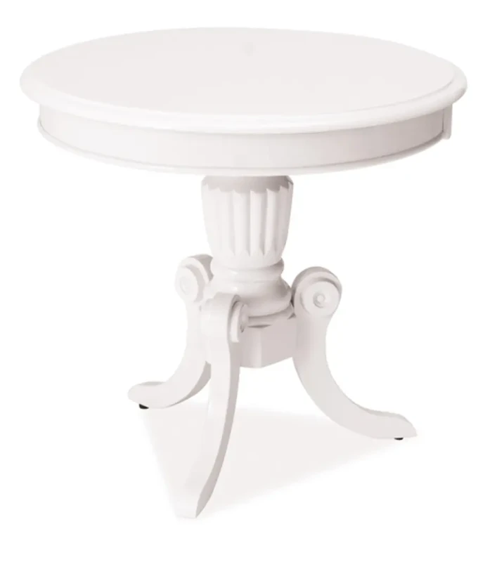 Stolik Nevada D to klasyczna i stylowa propozycja tradycyjnego mebla do salonu. Blat stolika wykonany został z wysokiej jakości płyty MDF oraz forniru. Stabilność mebla zapewnia drewniany stelaż. Cała konstrukcja stolika Nevada D wybarwiona została w pięknym, klasycznym białym kolorze. Tradycyjna konstrukcja oraz prosta, uniwersalna biała barwa wyróżnia stolik Nevada D na tle innych. Minimalistyczny design mebla sprawia, że stolik świetnie wkomponuje się zarówno do wnętrz bardziej nowoczesnych, jak również do pomieszczeń tradycyjnych.