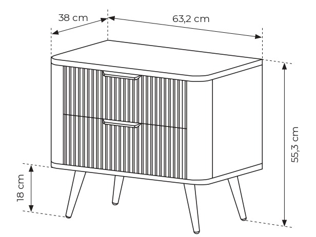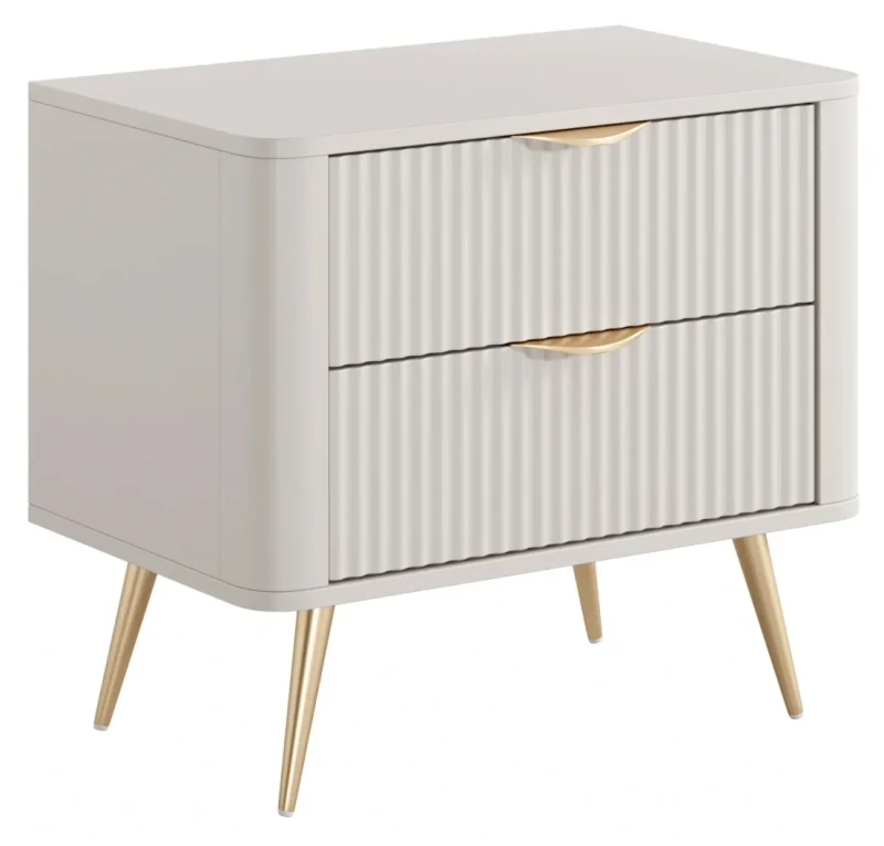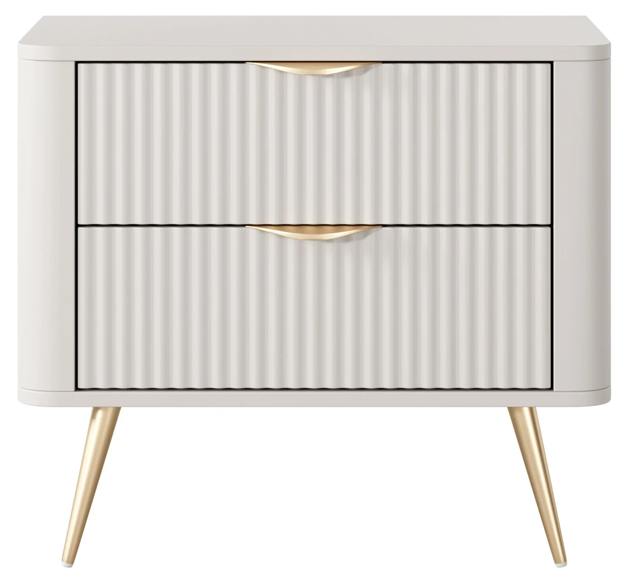 Stolik nocny Lante ryflowany z szufladami do sypialni 63 cm beżowy