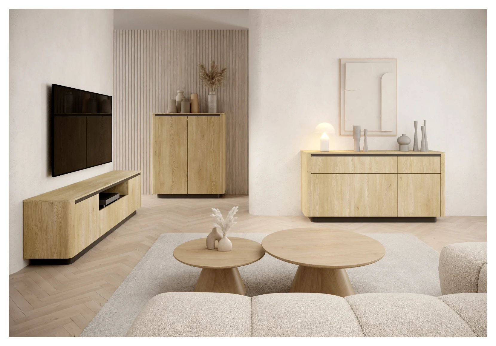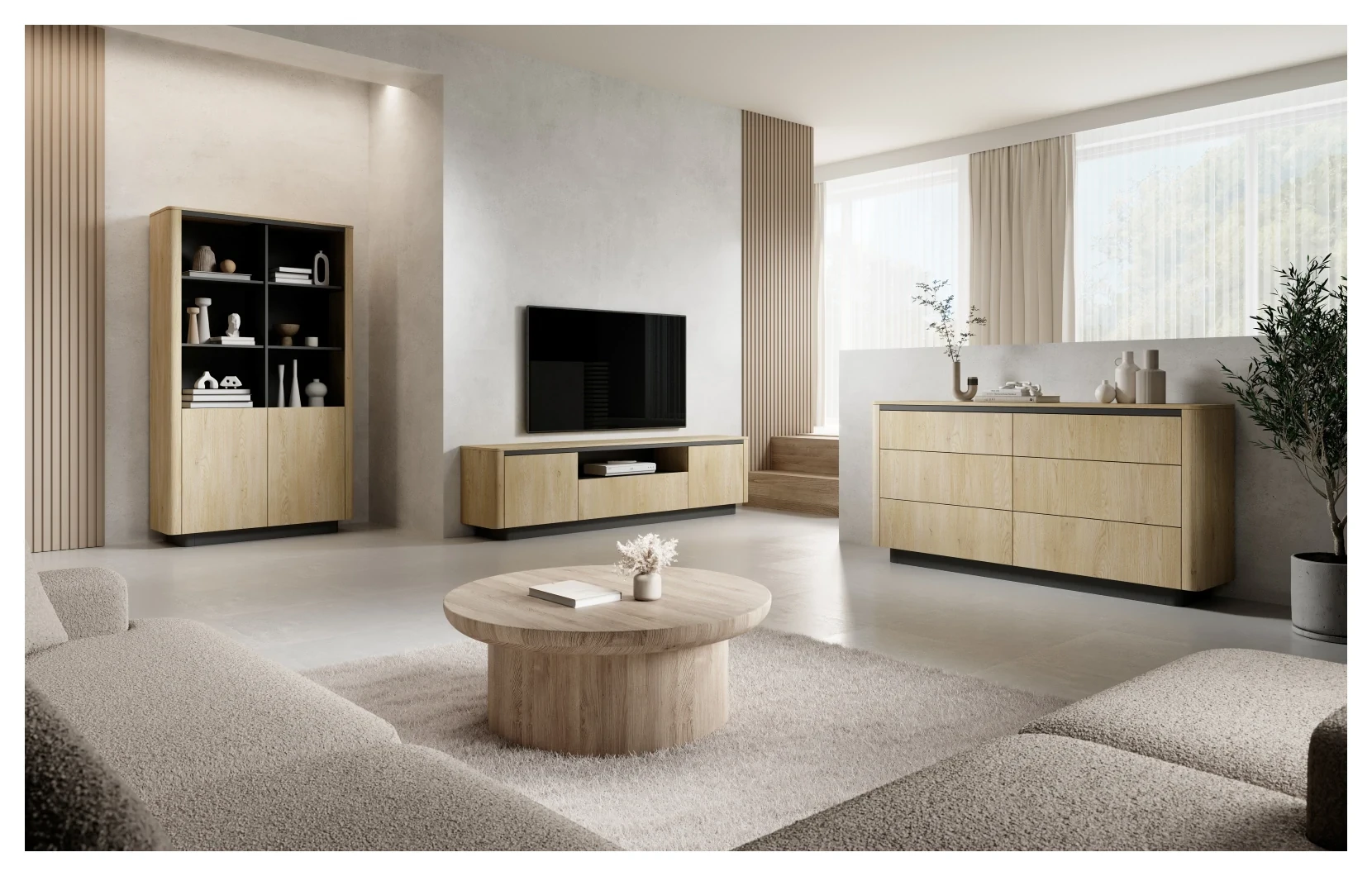 - Korpus: płyta meblowa laminowana 16 mm (E05) + zaoblona listwa MDF