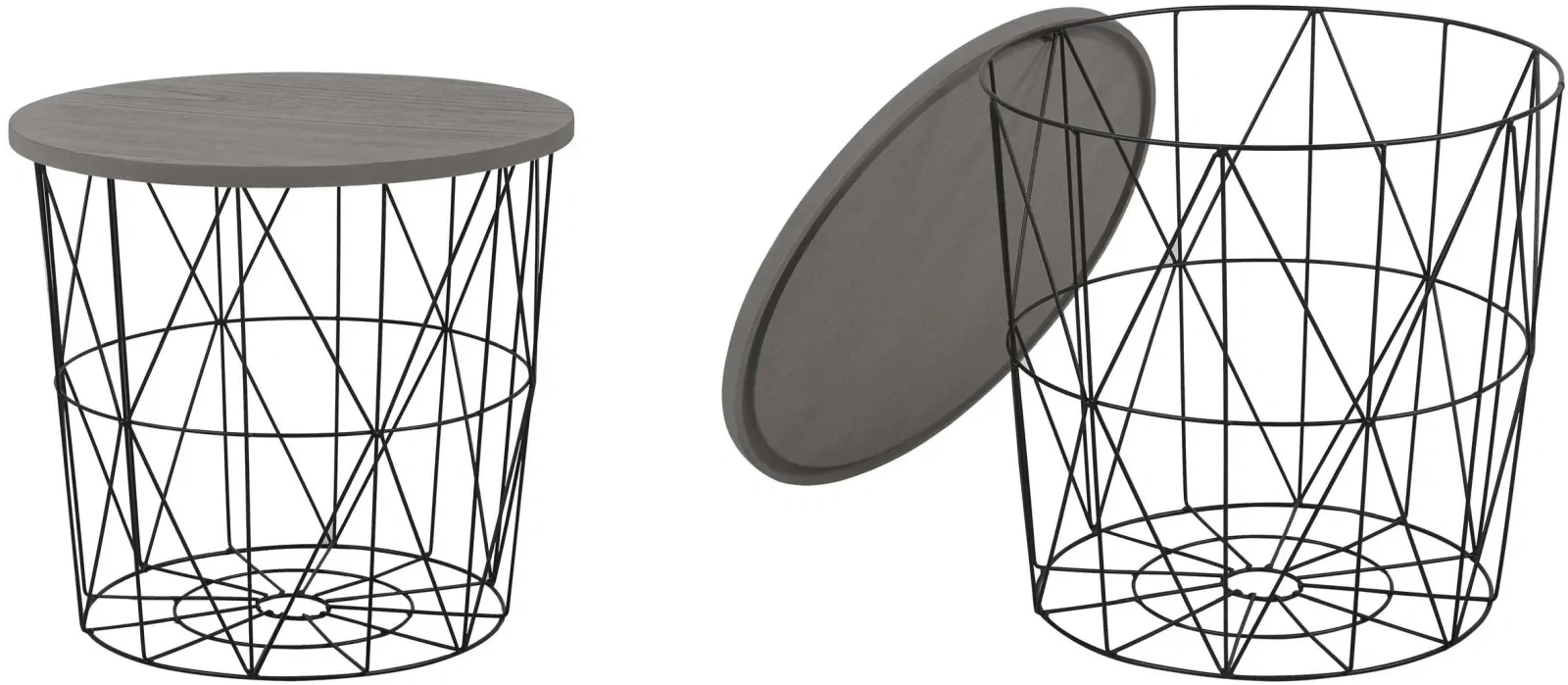 Stolik okrągły Mariffa 42cm z funkcją pojemnika do salonu czarny/popielaty