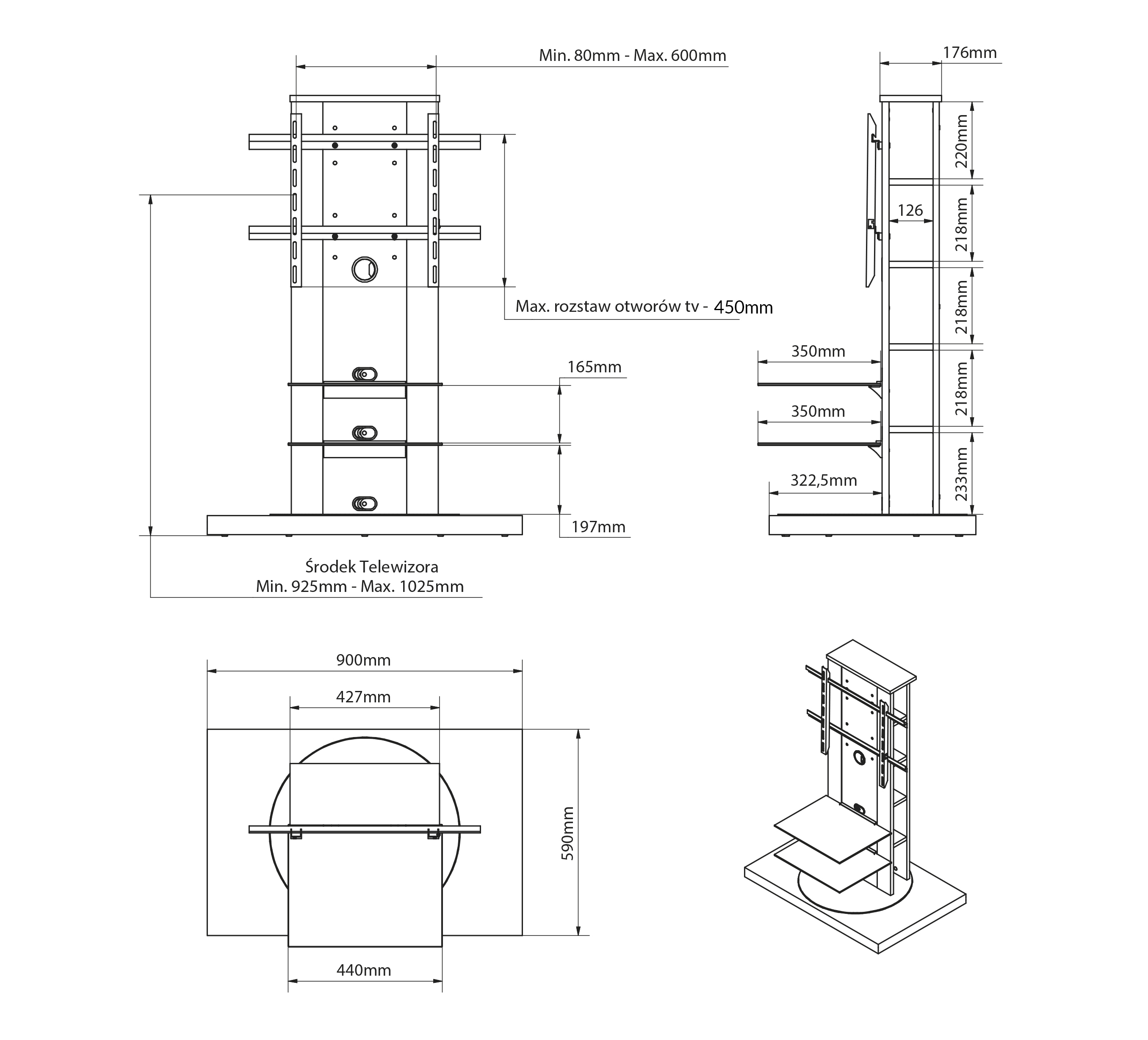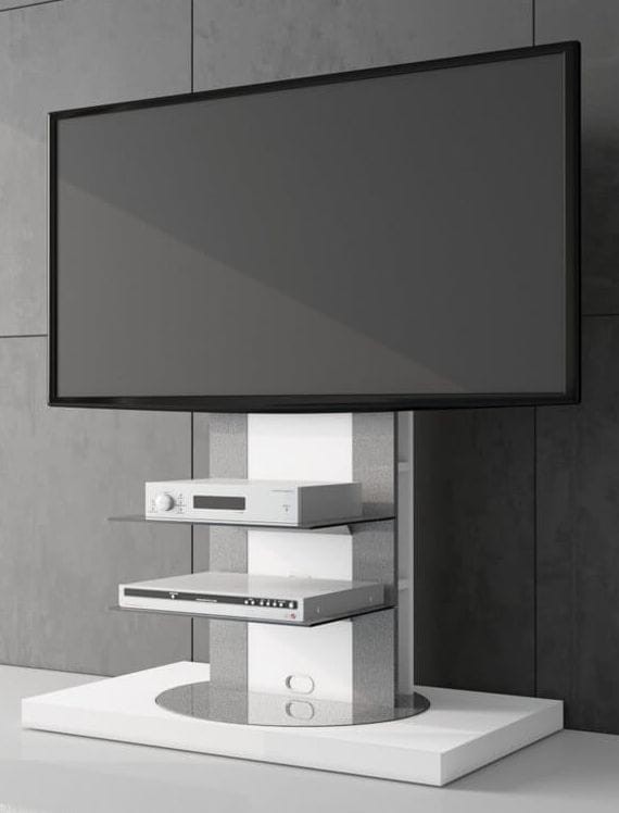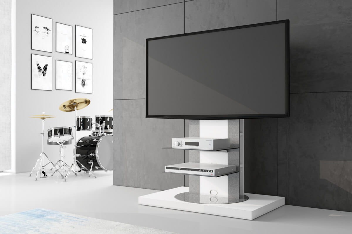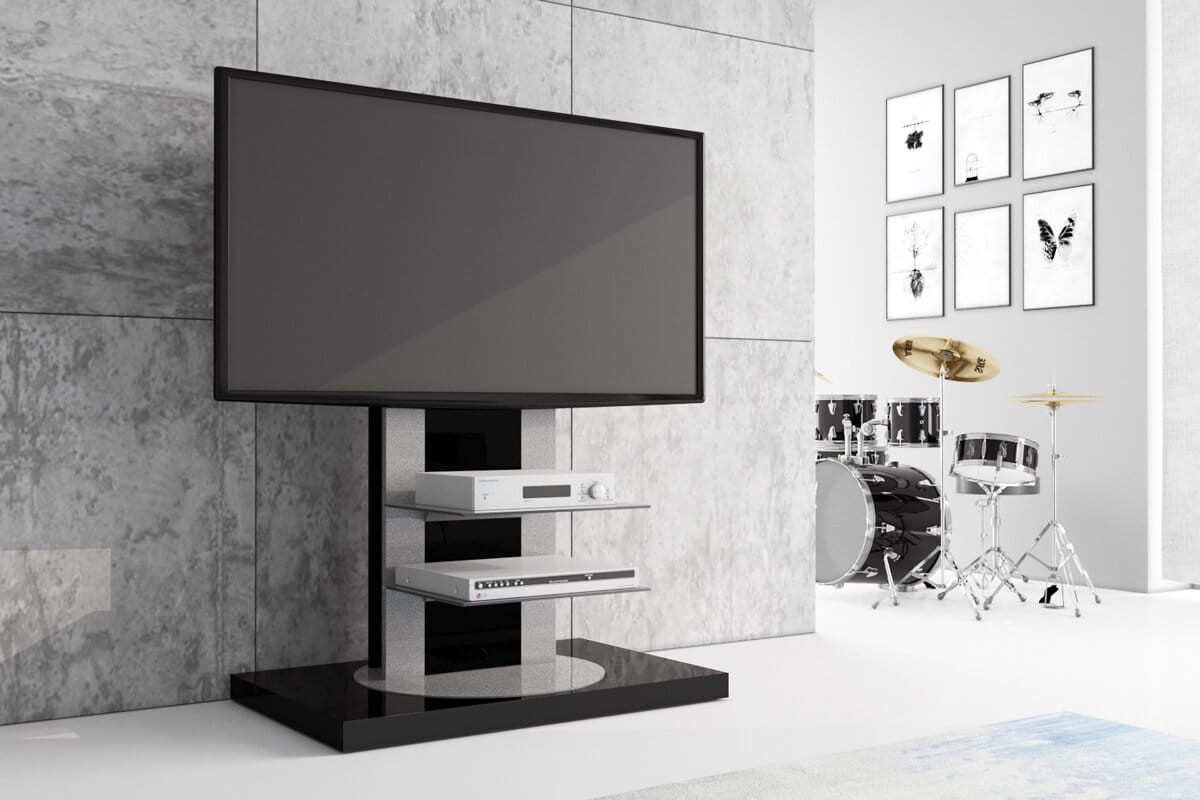 Stolik RTV ROMA 2 to niezwykle oryginalny i elegancki stolika pod telewizor. Wyróżnia go nowoczesny design i funkcjonalność. Stolik wyposażony jest w dwie szklane półki przeznaczone do przechowywania sprzętu oraz obrotowy (360 stopni) słupek/wieszak do powieszenia TV (max.55’), z obustronnym miejscem do przechowywania płyt CD oraz z miejscem do ukrycia przewodów.