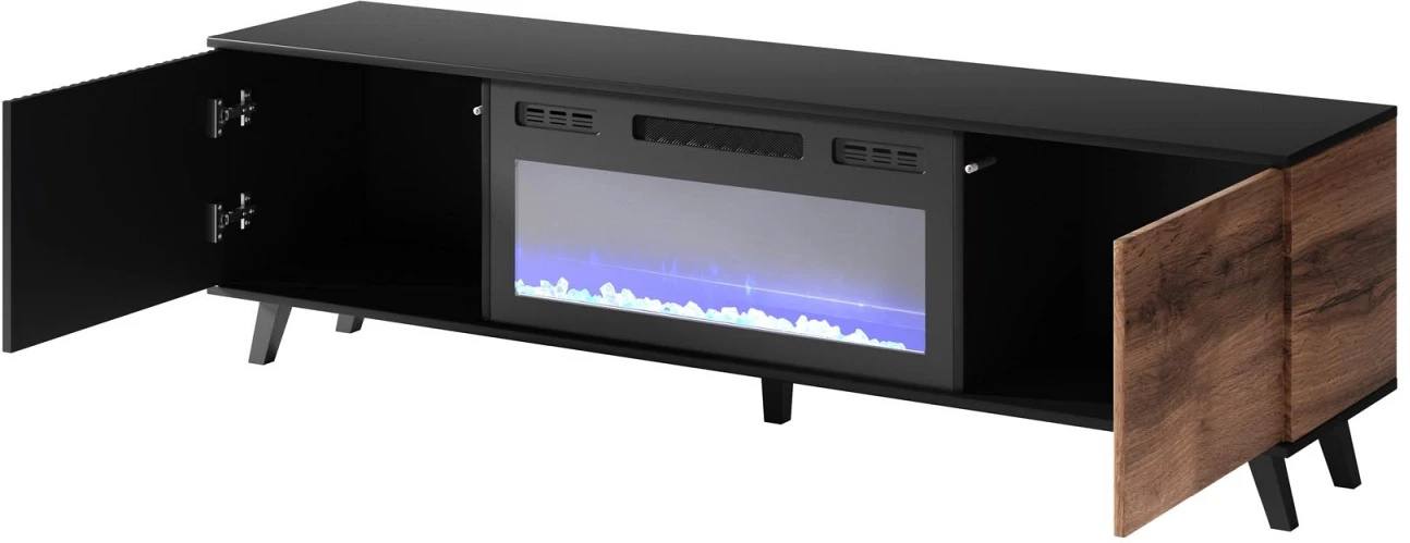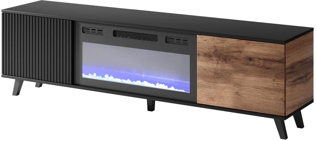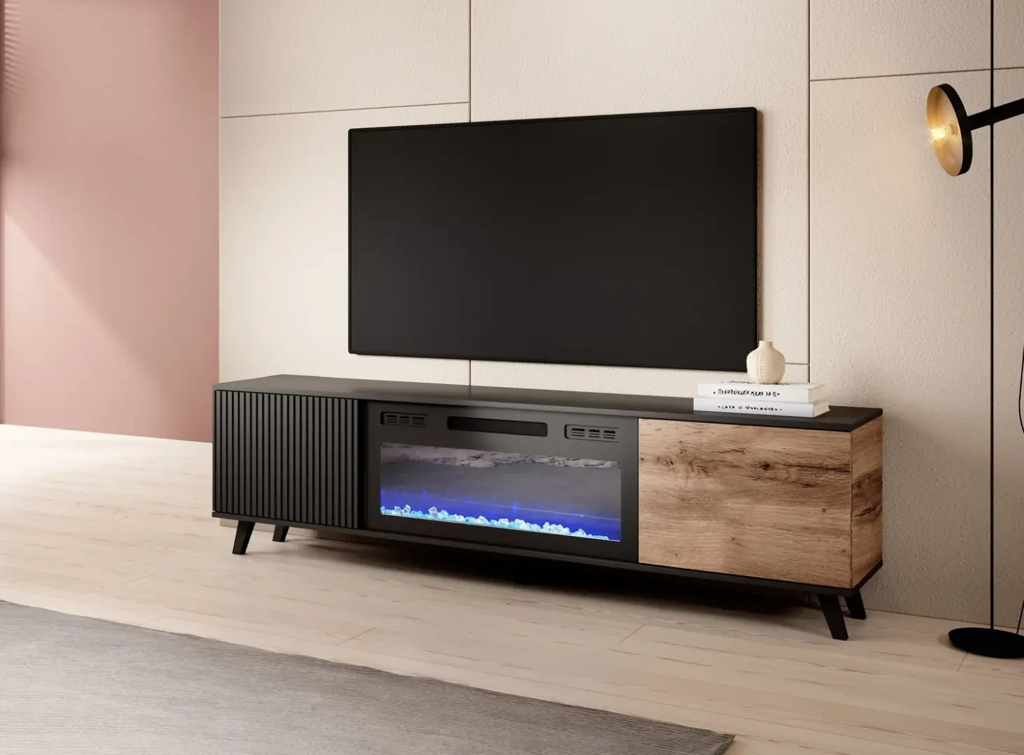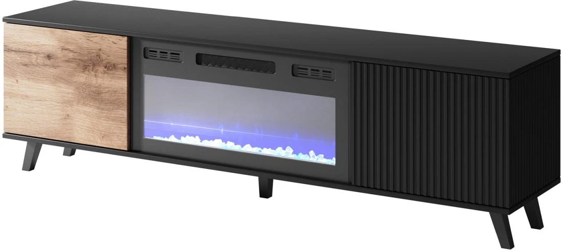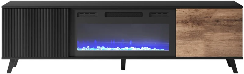 Stolik szafka RTV z kominkiem Random RTV-K 180 cm dąb wotan/czarny