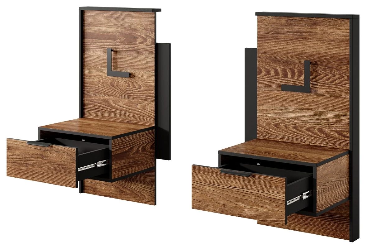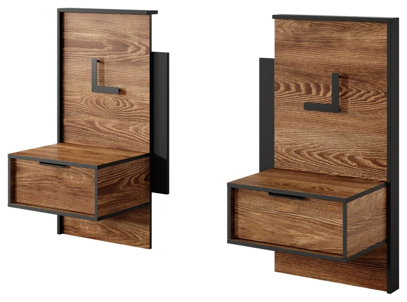 - Wysokiej jakości materiały i trwałość - wykonane z laminowanej płyty wiórowej o grubości 16 mm w kolorze kasztana z antracytowymi akcentami, co zapewnia im długowieczność i odporność na uszkodzenia.