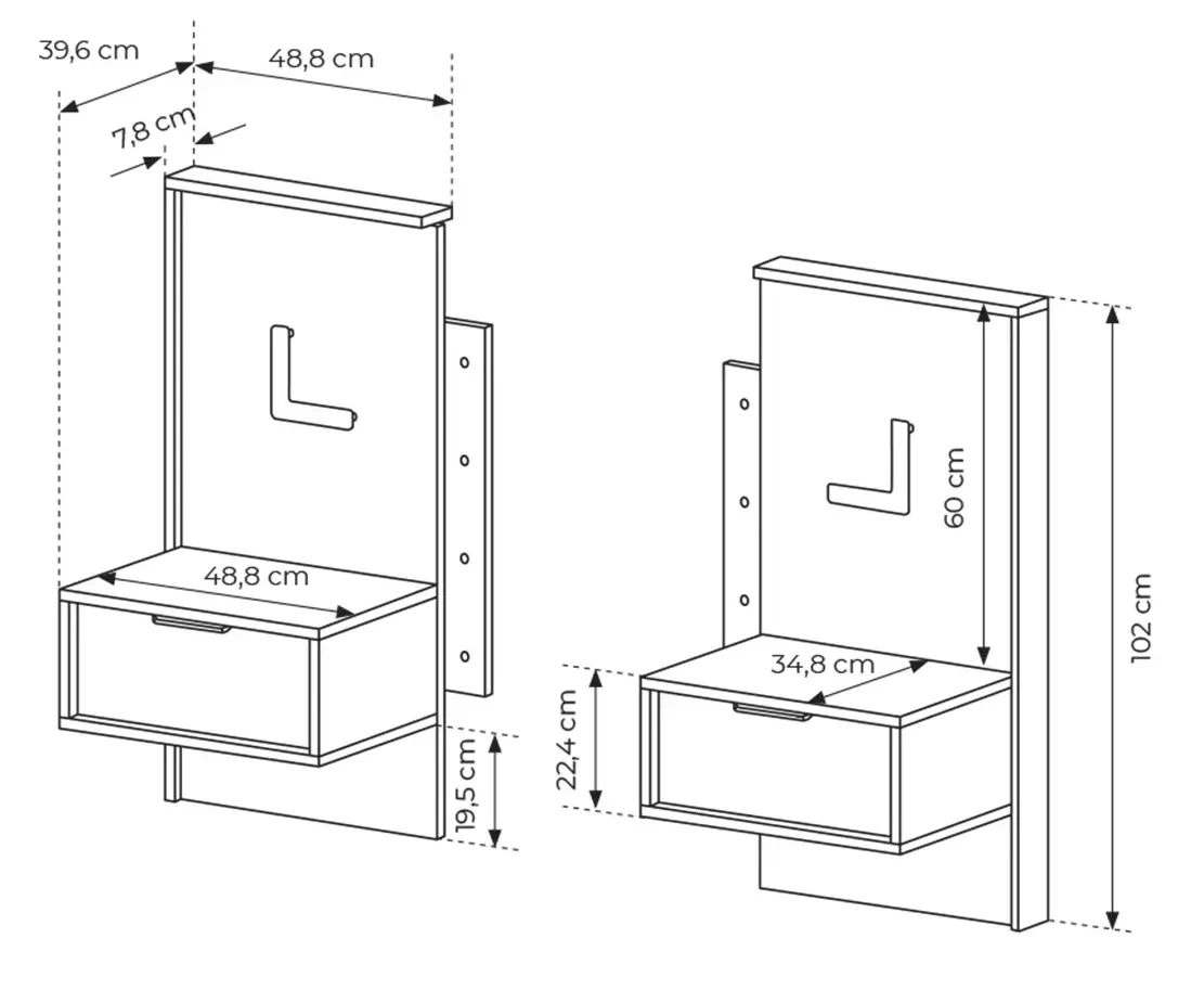 - Szerokość: 48,8 + 48,8 cm